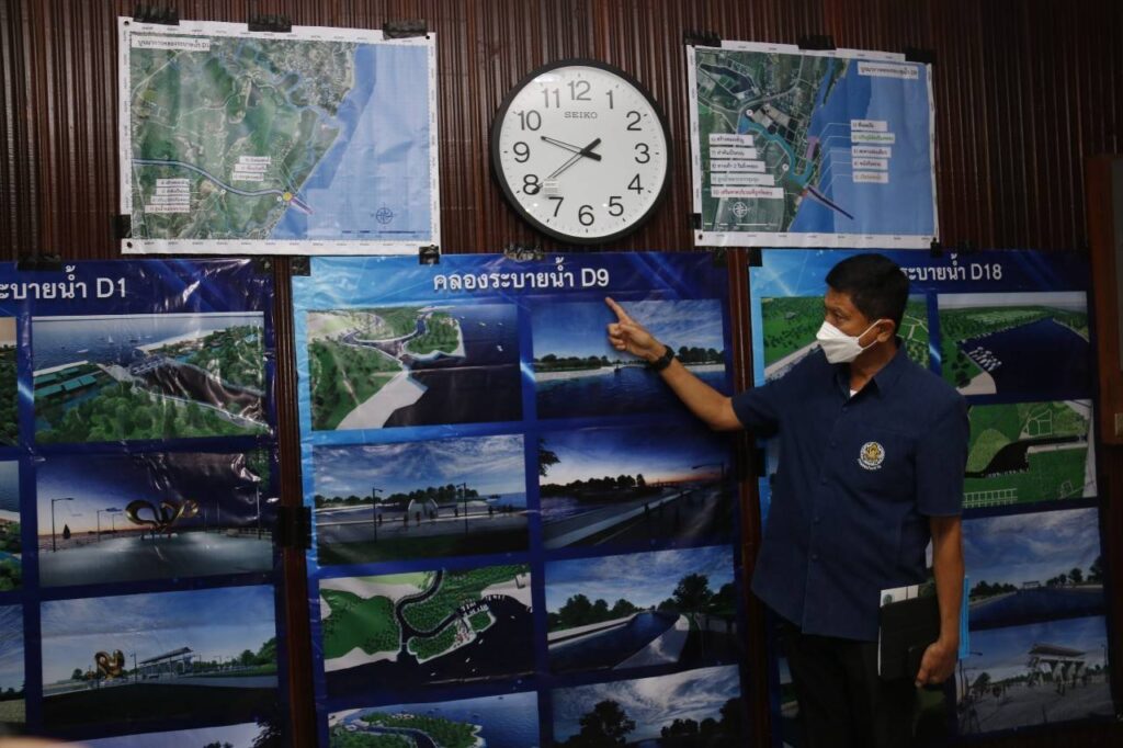 ของกรมชลประทาน จะใช้รอบปีการเกิดซ้ำของน้ำหลากที่ 25 ปี เท่ากับ 800 ลูกบาศก์เมตรต่อวินาที โดยมีแผนการระบายน้ำออกสู่ทะเลเพื่อป้องกันแก้ไขปัญหาน้ำท่วม ดังต่อไปนี้
