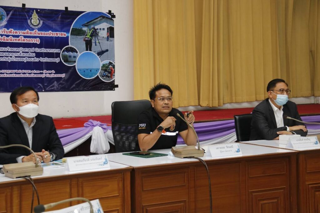 วันที่ 26 ก.ค.65 ที่องค์การบริหารส่วน จังหวัดเพชรบุรี : นายเฉลิมเกียรติ คงวิเชียรวัฒน์ รองอธิบดีกรมชลประทาน เปิดเผยว่า จังหวัดเพชรบุรี ตั้งอยู่ในแนวร่องน้ำผ่านของลุ่มน้ำเพชรบุรี เมื่อเกิดฝนตกหนักเกิน 230 มิลลิเมตร ติดต่อกันเกิน 48 ชั่วโมง จะเกิดน้ำป่าไหลหลากเข้าสู่แม่น้ำเพชรบุรี ทำให้ทั้งสองฝั่งของแม่น้ำและที่ราบลุ่มแม่น้ำเพชรบุรีประสบอุทกภัยเป็นประจำทุกปี “โครงการจัดทำแบบจำลองคณิตศาสตร์ นิเวศวิทยาทางทะเลและผลกระทบสิ่งแวดล้อมโครงการบรรเทาอุทกภัยลุ่มน้ำเพชรบุรีตอนล่าง จังหวัดเพชรบุรี” จะเป็นการแก้ไข