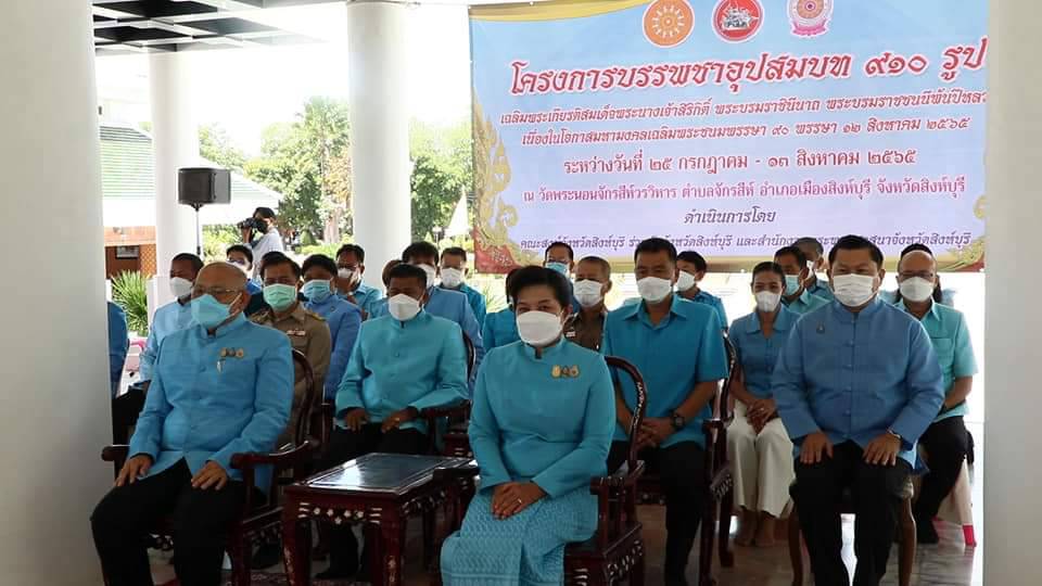 วันนี้ (25 ก.ค.65) ณ พุทธมณฑลประจำจังหวัดสิงห์บุรี ตำบลจักรสีห์ จังหวัดสิงห์บุรี นายชัยชาญ สิทธิวิรัชธรรม ผู้ว่าราชการจังหวัดสิงห์บุรี เป็นประธานพิธีมอบผ้าไตรโครงการบรรพชาอุปสมบท 910 รูป เฉลิมพระเกียรติสมเด็จพระนางเจ้าสิริกิติ์ พระบรมราชินีนาถ พระบรมราชชนนีพันปีหลวง เนื่องในโอกาสมหามงคลเฉลิมพระชนมพรรษา 90 พรรษา 12 สิงหาคม 2565 ซึ่งจังหวัดสิงห์บุรีมีผู้เข้าร่วมบรรพชาอุปสมบท จำนวน 9 คน และจัดพิธีอุปสมบท ณ พระอุโบสถกลางน้ำ วัดพระนอนจักรสีห์วรวิหาร โดยมี นายสมชาย ลีหล้าน้อย รองผู้ว่าราชการจังหวัดสิงห์บุรี นายกเหล่ากาชาดจังหวัดสิงห์บุรี หัวหน้าส่วนราชการ และข้าราชการ เข้าร่วมพิธีพร้อมเพรียงกัน