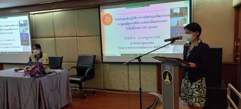 เมื่อวันที่๒๕ กรกฎาคม ๒๕๖๕ แพทย์หญิงนุชรินทร์ อักษรดี ผู้อำนวยการโรงพยาบาลพระนารายณ์มหาราชประธานเปิดการจัดการประชุมเชิงปฏิบัติการการจัดทำแผนการดูแลผู้สูงอายุ (care plan) กลุ่มผู้ที่มีภาวะสมองเสื่อม และต้องการการดูแลระยะยาว สำหรับทีมสุขภาพ และอาสาสมัครในชุมชน ในพื้นที่นำร่องระบบ CDC system เขตสุขภาพที่ 4 จังหวัดลพบุรี ระหว่างวันที่ ๒๕-๒๖ กรกฎาคม ๒๕๖๕ พร้อมด้วยคุณรินนิภา สวนสุข