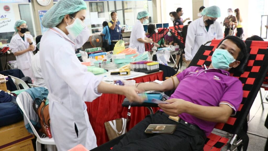 วันที่ 27 กรกฏาคม 2565 นางเหล่ากาชาดจังหวัดสิงห์บุรี ร่วมกับศูนย์บริการโลหิตแห่งชาติที่ 2 จังหวัดลพบุรี เปิดรับบริจาคโลหิต ตั้งแต่เวลา 08.30 – 12.00 น. ณ บริเวณห้องโถงชั้น 1 ศาลากลางจังหวัดสิงห์บุรี อาคาร 5 ชั้น โดยมีข้าราชการ พนักงานราชการ รัฐวิสาหกิจลูกจ้าง และประชาชน มาลงทะเบียนรับบัตรคิวบริจาคโลหิตกันอย่างต่อเนื่อง โดยมีทีมแพทย์จากภาคบริการโลหิตแห่งชาติที่ 2 จังหวัดลพบุรี และเหล่ากาชาดจังหวัดสิงห์บุรี มาให้บริการและอำนวยความสะดวกให้กับผู้ที่มาบริจาคโลหิตเพื่อสำรองโลหิตให้กับผู้ป่วยต่างๆ ที่จำเป็นต้องได้รับโลหิตในการรักษา ได้แก่ ผู้ป่วยโรคเลือด โรคมะเร็ง ผ่าตัด คลอดบุตร อุบัติเหตุ และอื่นๆ ที่ต้องการเลือดเป็นจำนวนมาก