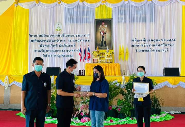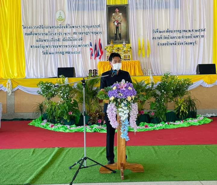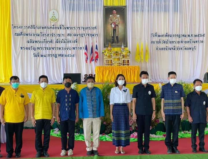 วันพุธที่ 27 กรกฎาคม 2565 เวลา 09.00 น. นายนิวัฒน์ รุ่งสาคร ผู้ว่าราชการจังหวัดลพบุรี เป็นประธานในพิธีเปิดโครงการคลินิกเกษตรเคลื่อนที่ในพระราชานุเคราะห์สมเด็จพระบรมโอรสาธิราชฯ สยามมกุฎราชกุมาร เฉลิมพระเกียรติ เนื่องในโอกาสที่ทรงเจริญพระชนมพรรษา 70 พรรษา 28 กรกฎาคม 2565 และโครงการหน่วยงานบำบัดทุกข์ บำรุงสุขสร้างรอยยิ้มให้ประชาชน จังหวัดลพบุรี ครั้งที่ 4 ประจำปี พ.ศ. 2565 ณ วัดบ้านทราย อำเภอบ้านหมี่ จังหวัดลพบุรี พร้อมด้วยนางวัชรภรณ์ รุ่งสาคร นายกเหล่ากาชาดจังหวัดลพบุรี หัวหน้าส่วนราชการ นายอำเภอ เกษตรกร ผู้นำท้องถิ่นท้องที่ และหน่วยงานที่เกี่ยวข้องเข้าร่วมในพิธีดังกล่าว
