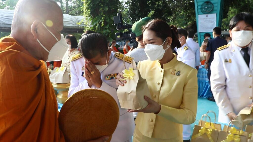 วันนี้ (28 ก.ค. 65) นายชัยชาญ สิทธิวิรัชธรรม ผู้ว่าราชการจังหวัดสิงห์บุรี เป็นประธานในพิธี เปิดกรวยกระทงดอกไม้ ธูปเทียนแพ ถวายราชสักการะ เบื้องหน้าพระบรมฉายาลักษณ์ พระบาทสมเด็จพระวชิรเกล้าเจ้าอยู่หัว พระสงฆ์ให้ศีล และเจริญพระพุทธมนต์ ประธานในพิธีถวายผ้าไตร ข้าราชการชั้นผู้ใหญ่ถวายเครื่องไทยธรรมพร้อมภัตตาหาร (ปิ่นโต) พระสงฆ์อนุโมทนา ถวายอดิเรก โดยมี รองผู้ว่าราชการจังหวัดสิงห์บุรี คณะ ตุลาการ ข้าราชการ ทหาร ตำรวจ นายกเหล่ากาชาด และประชาชนชาวจังหวัดสิงห์บุรี ร่วมในพิธีทำบุญตักบาตร ถวายพระราชกุศล พระบาทสมเด็จพระวชิรเกล้าเจ้าอยู่หัว เนื่องในโอกาสวันเฉลิมพระชนมพรรษา 28 กรกฎาคม 2565 ณ อาคารกีฬาเอนกประสงค์ สนามกีฬาองค์การบริหารส่วนจังหวัดสิงห์บุรี ต่อมา พระเถระ จำนวน 10 รูป และพระสงฆ์ สามเณร รวมจำนวน 71 รูป รับบิณฑบาต โดยประชาชนชาวขอนแก่นต่างพร้อมใจสวมเสื้อสีเหลืองเข้าร่วมพิธีอย่างพร้อมเพรียงกัน