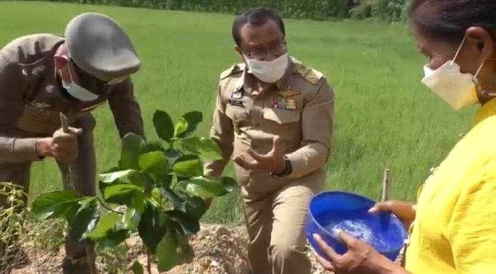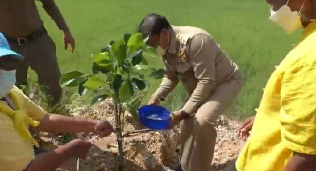 พร้อมกันนี้ นายชัชวาลย์ เบญจสิริวงศ์ รองผู้ว่าราชการจังหวัดเพชรบูรณ์ ยังได้เป็นผู้ปลูกต้นขนุน ภายในบริเวณบ้านหลังดังกล่าว ตามความเชื่อที่ว่า จะช่วยเกื้อหนุน จุนเจือครอบครัว ให้มีคนคอยอุดหนุน เกื้อหนุน พร้อมทั้งกล่าวติดตลกว่า ให้เจ้าของบ้าน ช่วยดูแลรดน้ำ ขนุนต้นนี้ให้เติบใหญ่ หากออกลูกแรกเมื่อใด ให้รีบแจ้งท่านนายอำเภอวังโป่ง หรือหน่วยงานในพื้นที่ทันที เพื่อให้เตรียมประสานมาหาตนเอง ซึ่งหากถึงช่วงนั้น ตนอาจจะย้ายไปอยู่จังหวัดใด จังหวัดหนึ่งก็ตาม ก็ให้ส่งขนุนลูกแรก จากต้นที่ตนเองปลูกกับมือนี้ ไปให้ตนทานด้วย โดยตนเองนั้น จะตั้งหน้าตั้งตา เฝ้ารอทานขนุนต้นนี้จนกว่าจะออกลูกเลยทีเดียว