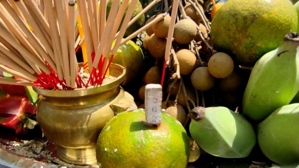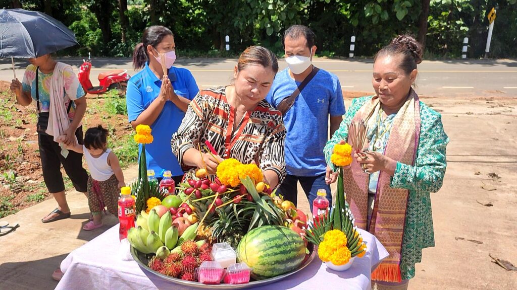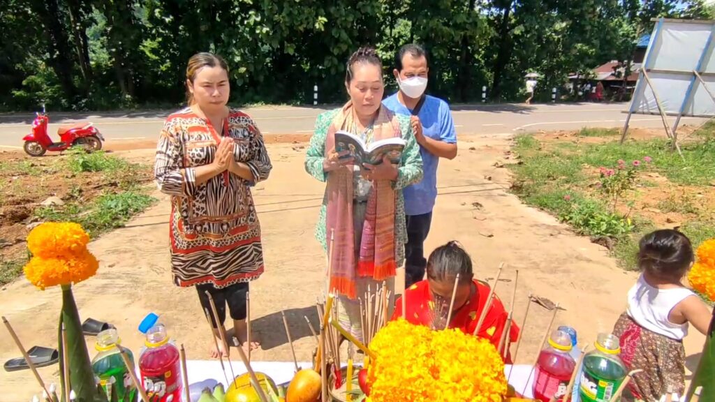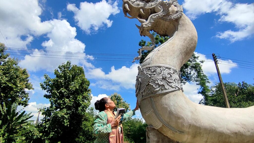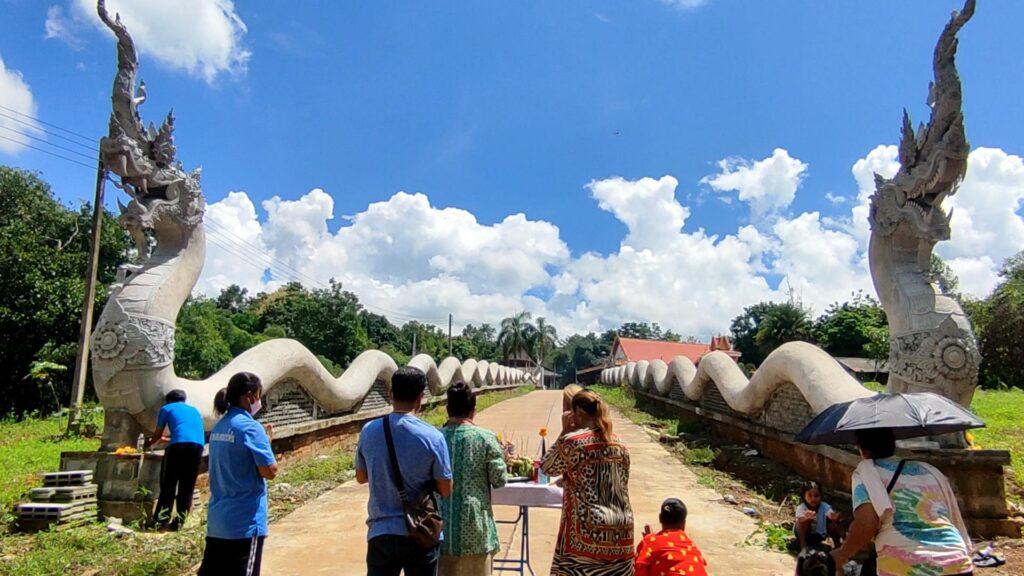 ในวันนี้ นางบุษบา ด้วงกระยอม อายุ56ปี ผู้ที่ถูกรางวัลที่3 จึงได้ชักชวนเพื่อนบ้าน นำผลไม้ 9 อย่าง และเครื่องเซ่นไหว้ มาทำพิธีแก้บนต่อองค์พญานาค ที่ดลบันดาลโชคลาภให้สมปรารถนา และในขณะเดียวกัน ก็ได้ร่วมกันจุดธูปเทียนเสี่ยงทาย เพื่อขอพร ให้ดลบันดาลโชคลาภในงวดต่อไป เพื่อหวังนำเงินมาร่วมทำบุญ ต่อเติมเสริมเกล็ดองค์พญานาคทั้งสอง ซึ่งทางวัดยังคงขาดทุนทรัพย์ในการก่อสร้าง โดยเลขธูปเสี่ยงทาย ได้ปรากฎตัวเลขให้เห็นชัดเจน 362