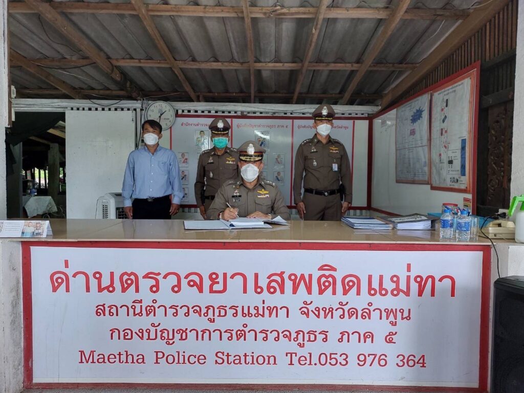 วันนี้ 29 ก.ค.65 เวลา 13.00 น. พล.ต.ท.ปิยะ ต๊ะวิชัย ผบช.ภ.5 ได้มาตรวจเยี่ยมด่านตรวจยาเสพติดแม่ทา สภ.แม่ทา จว.ลำพูน พบ. พ.ต.อ.พชรพล วงศ์รจิต รอง ผบก.ภ.จว.ลำพูน , พ.ต.อ.อำนวย คำจอง ผกก.สภ.แม่ทา และเจ้าหน้าที่ตำรวจประจำด่านตรวจยาเสพติดแม่ทา อยู่ปฏิบัติหน้าที่รายงานเหตุการณ์ โดย พล.ต.ท.ปิยะ ต๊ะวิชัย ได้มอบสิ่งของเครื่องใช้ในชีวิตประจำวันให้กับเจ้าหน้าที่ตำรวจประจำด่านตรวจยาเสพติด สภ.แม่ทา เป็นการเสริมสวัสดิการและเพื่อเป็นขวัญกำลังใจในการปฏิบัติงานให้กับผู้ใต้บังคับบัญชา และ พล.ต.ท.ปิยะ ต๊ะวิชัย ได้กำชับการปฎิบัติของเจ้าหน้าที่ตำรวจประจำด่านให้เพิ่มความเข้มในการตรวจ เนื่องจากช่วงเวลานี้อยู่ในช่วงหยุดติดต่อกันหลายวัน การเดินทางของประชาชนมีมาก อาจมีการลักลอบลำเลียงยาเสพติดเข้าสู่พื้นที่ตอนในมากับการเดินทางดังกล่าวได้
