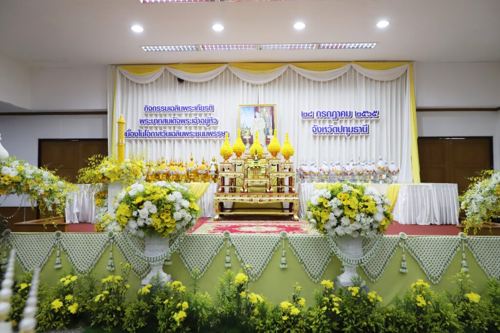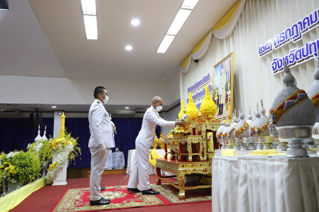 วันนี้ (28 ก.ค.65 ) เวลา 17.30 น. ที่ อาคารศาลารักษ์ปทุม ศาลากลางจังหวัดปทุมธานี นายณรงค์ศักดิ์ โอสถธนากร ผู้ว่าราชการจังหวัดปทุมธานี เป็นประธานพิธีถวายเครื่องราชสักการะและวางพานพุ่ม และพิธีจุดเทียนถวายพระพรชัยมงคล พระบาทสมเด็จพระเจ้าอยู่หัว เนื่องในโอกาสวันเฉลิมพระชนมพรรษา 28 กรกฎาคม 2565 โดยนายวีระ สากุล ผู้พิพากษาหัวหน้าศาลเยาวชนและครอบครัวจังหวัดราชบุรี ช่วยทำงานชั่วคราวในตำแหน่งผู้พิพากษาหัวหน้าศาลจังหวัดปทุมธานี นางจินจณา โอสถธนากร นายกเหล่ากาชาดจังหวัดปทุมธานี พลตำรวจโท คำรณวิทย์ ธูปกระจ่าง นายกองค์การบริหารส่วนจังหวัดปทุมธานี นายจรูญศักดิ์ สิงหเดช รองผู้ว่าราชการจังหวัดปทุมธานี นายพงศธร กาญจนะจิตรา รองผู้ว่าราชการจังหวัดปทุมธานี นายเอกวิทย์ มีเพียร รองผู้ว่าราชการจังหวัดปทุมธานี พ.อ.วินัย อภัยกุลชร รอง ผอ.รมน.จังหวัดปทุมธานี หัวหน้าส่วนราชการ ฝ่ายตุลาการ ข้าราชการและประชาชนเข้าร่วมพิธี