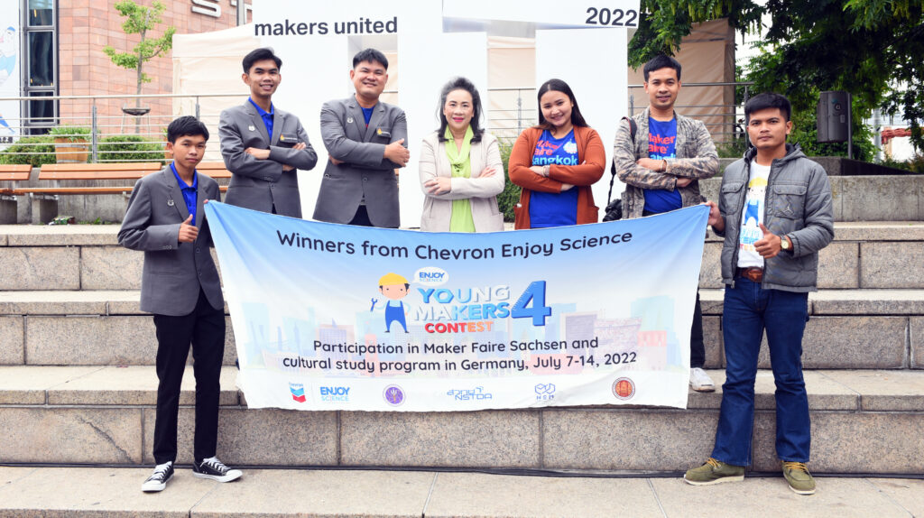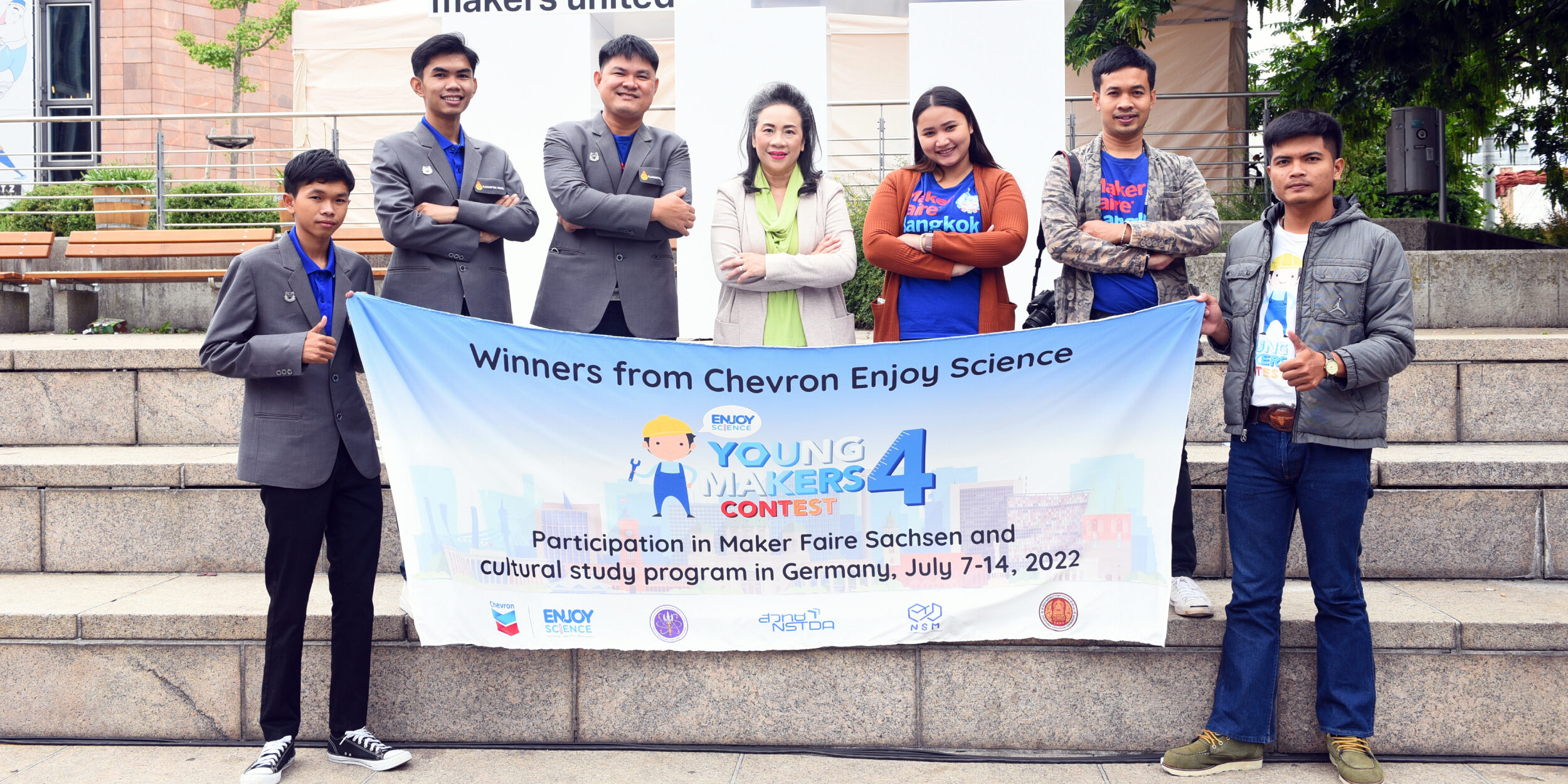ตะลุยเยอรมนี การกลับมาพบกันอีกครั้งของ 4 เยาวชนผู้ชนะการประกวด Chevron Enjoy Science: Young Makers Contest ปีที่ 4 ที่จัดขึ้นเมื่อปี 2020 ที่ผ่านมา แม้จะห่างหายกันไปกว่า 2 ปีจากสถานการณ์การระบาดโควิด-19 จนเมื่อเยอรมันเริ่มเปิดประเทศให้นักท่องเที่ยวจากทั่วทุกมุมโลกได้เดินทางเข้าประเทศได้