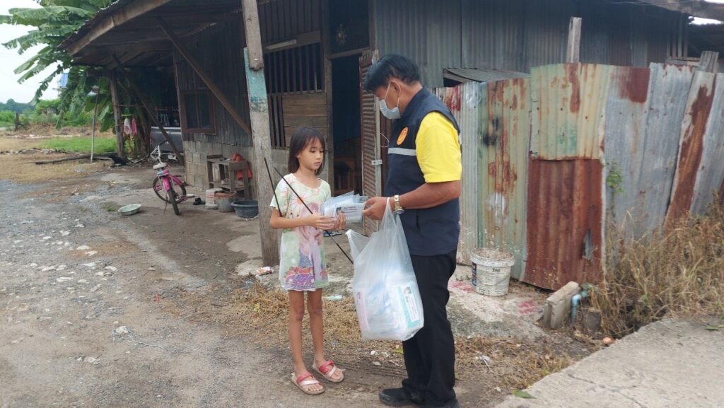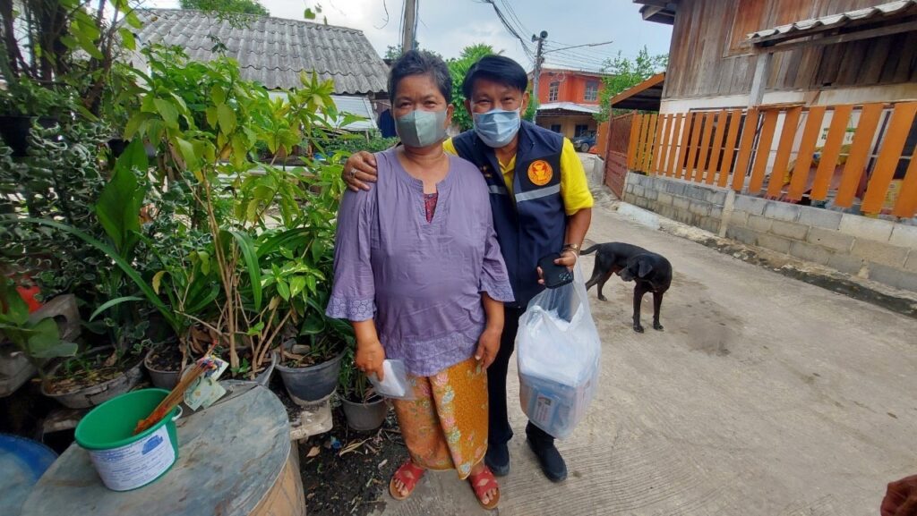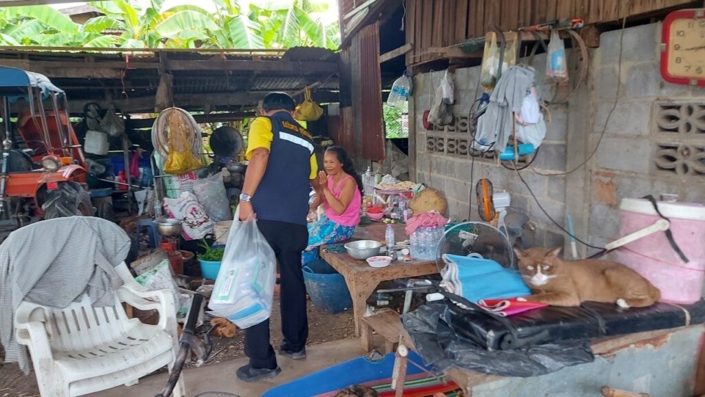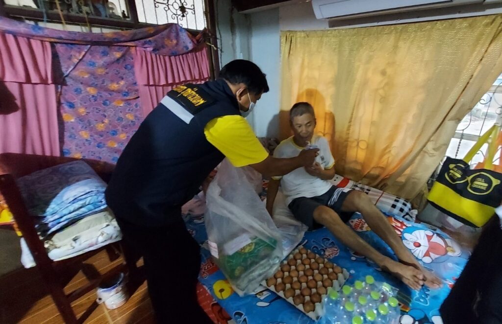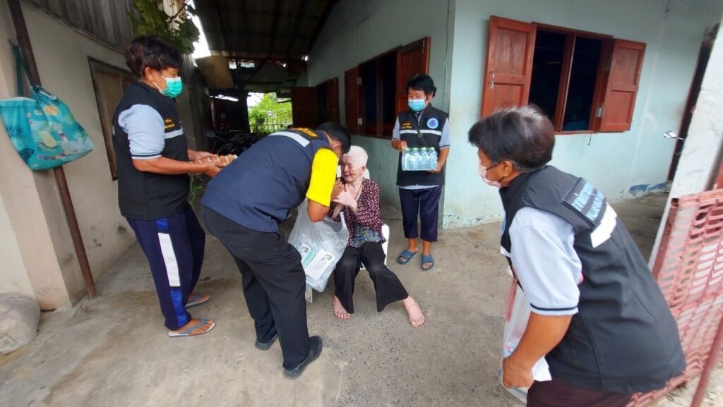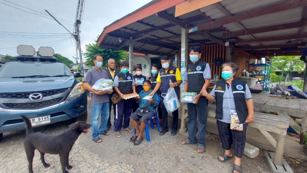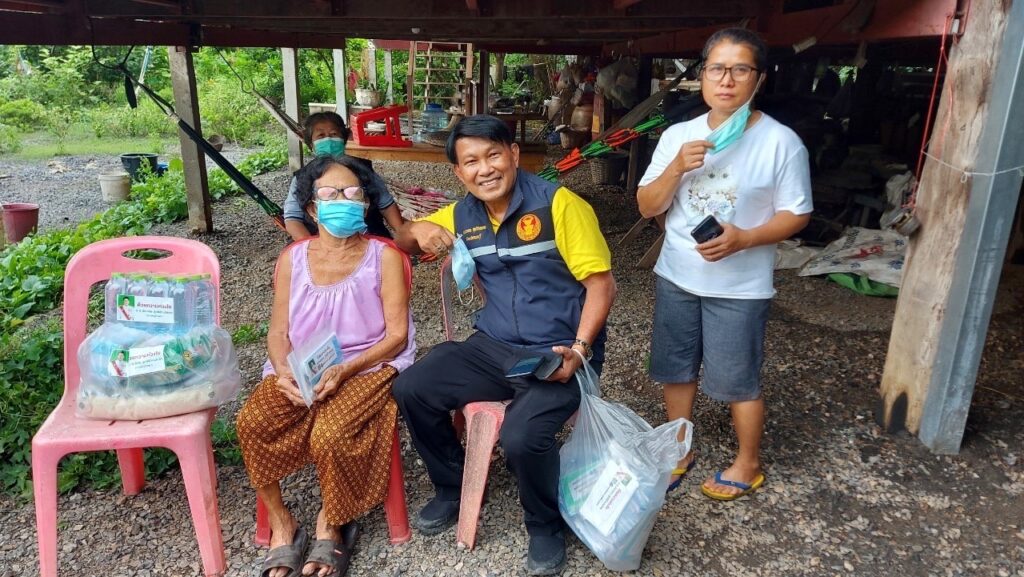 ลงพื้นที่ เยี่ยมประชาชน ที่ป่วยติดเตียง กลุ่มเปราะบาง (ผู้สูงอายุ ผู้พิการ ผู้ด้อยโอกาส ฯลฯ) ที่ไม่สามารถช่วยเหลือตนเองได้โดยได้มอบ เครื่องอุปโภค บริโรค และหน้ากากอนามัย เพื่อเป็นการเยี่ยมเยียนให้กำลังใจ และเป็นการช่วยเหลือเบื้องต้น แก่ประชาชน