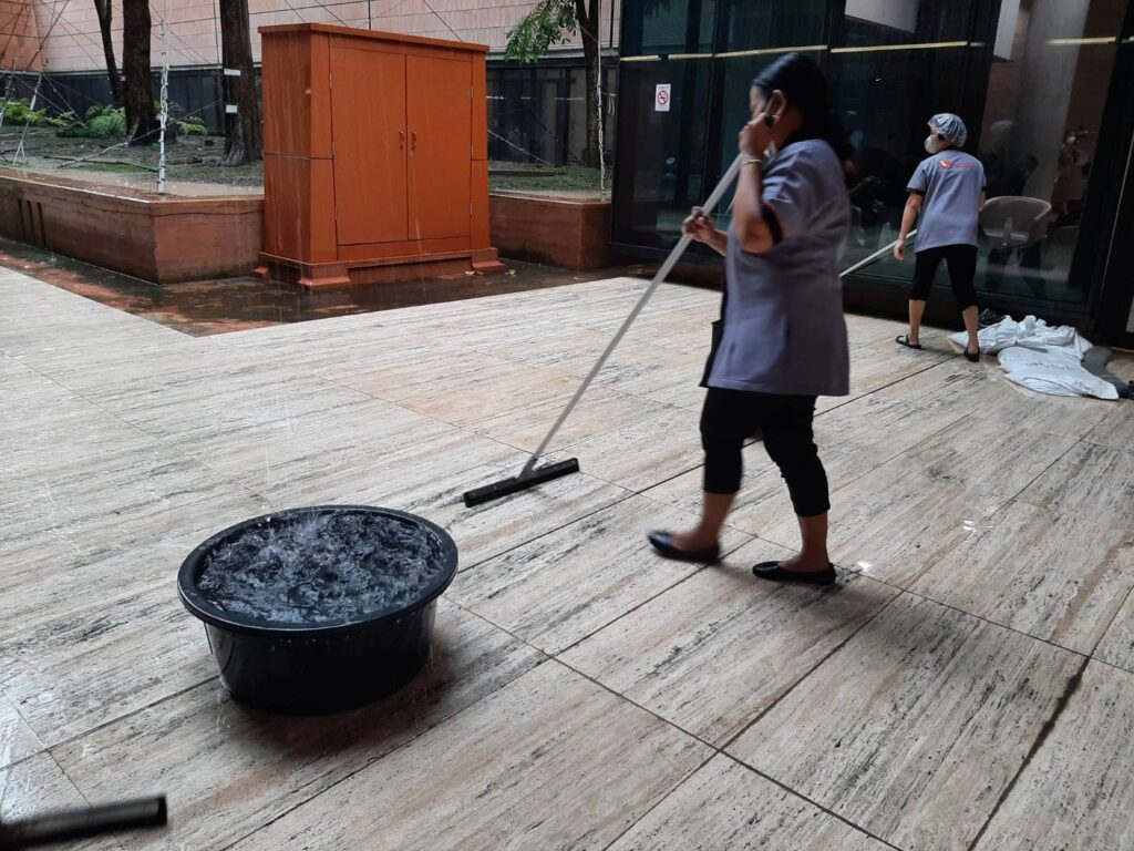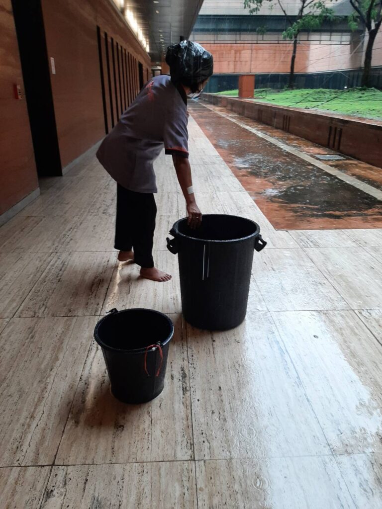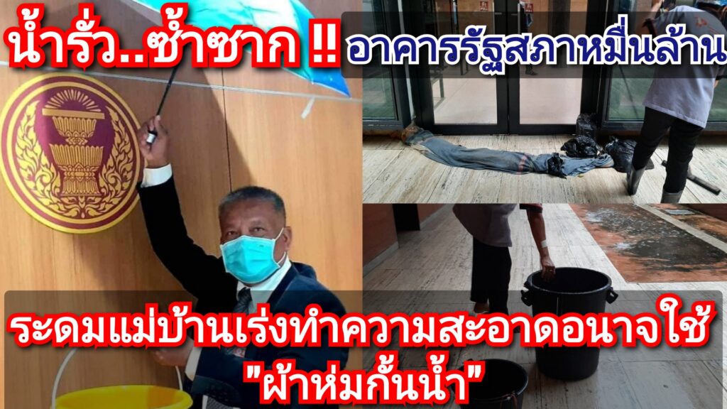 วันนี้ (1ส.ค.65) นายวัชระ เพชรทอง อดีตส.ส.พรรคประชาธิปัตย์ เปิดเผยว่า ตั้งแต่ช่วงเที่ยงของวันนี้ได้เกิดฝนตกหนักนานหลายชั่วโมงในพื้นที่กทม.แล้วก็ไม่เกินความคาดหมายที่อาคารรัฐสภาที่มีมูลค่าการก่อสร้างแพงสุดๆจากเงินภาษีอากรของประชาชนทั้งประเทศถึง 12,280 ล้านบาท จะต้องมีน้ำรั่วจากฝนที่ถล่มทุกครั้ง จนกลายเป็นปัญหาที่ยืดเยื้อเรื้อรังหาสร้างความอับอายไปทั่ว จากการก่อสร้างที่ไม่ได้มาตรฐาน แม้จะมีการยื่นหนังสือร้องเรียนไปถึงผู้รับผิดชอบหลายครั้งแล้ว แต่ปัญหาก็ยังไม่ได้รับการแก้ไข ล่าสุด มีน้ำรั่วจากชั้น5 ไหลตามมุมผนังลงมาจนถึงชั้น 1 ต้องมีการระดมกำลังแม่บ้านมาเช็ดถูพื้นที่ที่ถูกน้ำฝนรั่วลงมาที่บริเวณชั้น 1ของอาคาร และที่น่าเอน็จอนาจใจอย่างมากกับผู้พบเห็นคือ มีการนำกาละมังพลาสติกสีดำมารองรับน้ำและใช้ผ้าห่มมาซับเป็นเขื่อนกั้นน้ำ เพื่อไม่ให้ไหลเข้าไปภายในตัวอาคาร ถือเป็นการแก้ปัญหาแบบลูบหน้าปะจมูก ไม่มีการวางแผนและตั้งใจแก้ปัญหาอย่างจริงจัง
