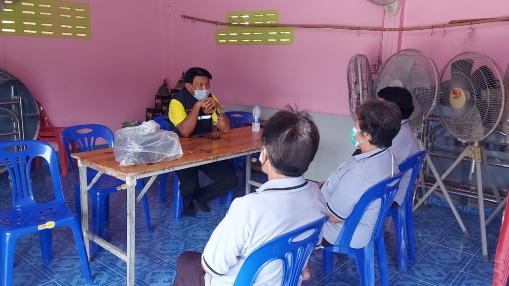 ลงพื้นที่ พบกลุ่ม อาสาสมัครสาธารณสุขหมู่บ้าน (อสม.) พื้นที่ดูแลครัวเรือน หมู่ 5 (บ้านท่าเดื่อน้อย) ตำบลนิคมสร้างตนเอง อำเภอเมือง จังหวัดลพบุรี เพื่อมอบหน้ากากอนามัย และประสานข้อมูล การดูแล กลุ่มผู้เปราะบาง ผู้สูงอายุ ผู้พิการ ผู้ป่วยติดบ้านติดเตียง ผู้ด้อยโอกาส และผู้พักรักษาตัวจากโรคโควิด19 ที่บ้าน เพื่อมอบ เครื่องอุปโภค-บริโภคและหน้ากากอนามัย เป็นการช่วย เหลือเบื้องต้น ให้กับ ประชาชน