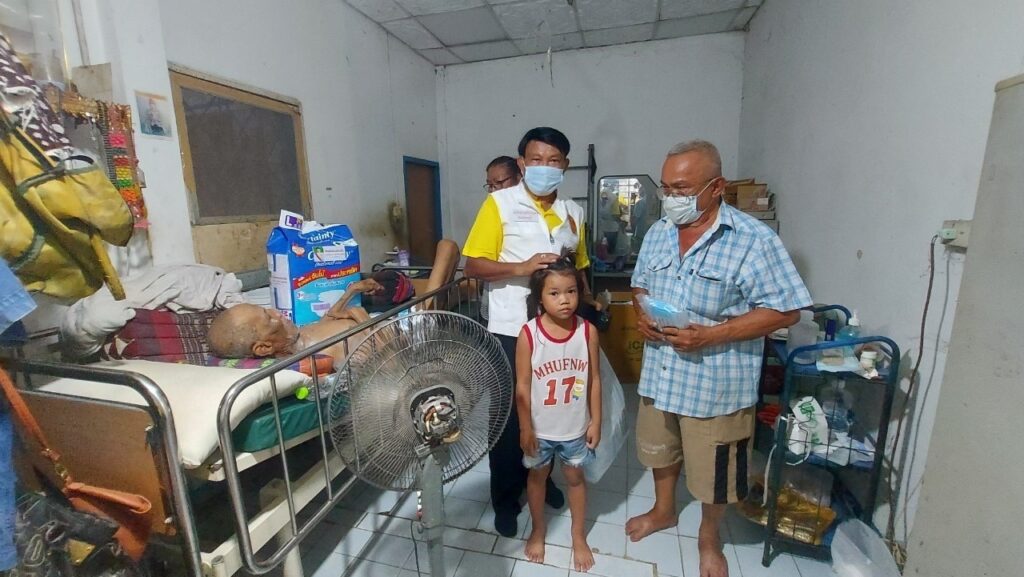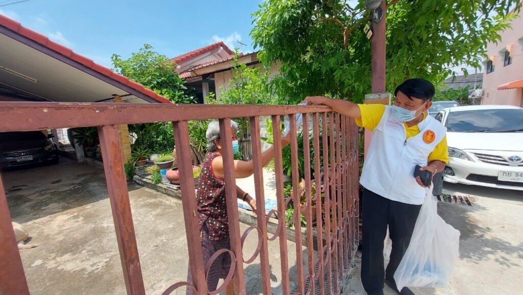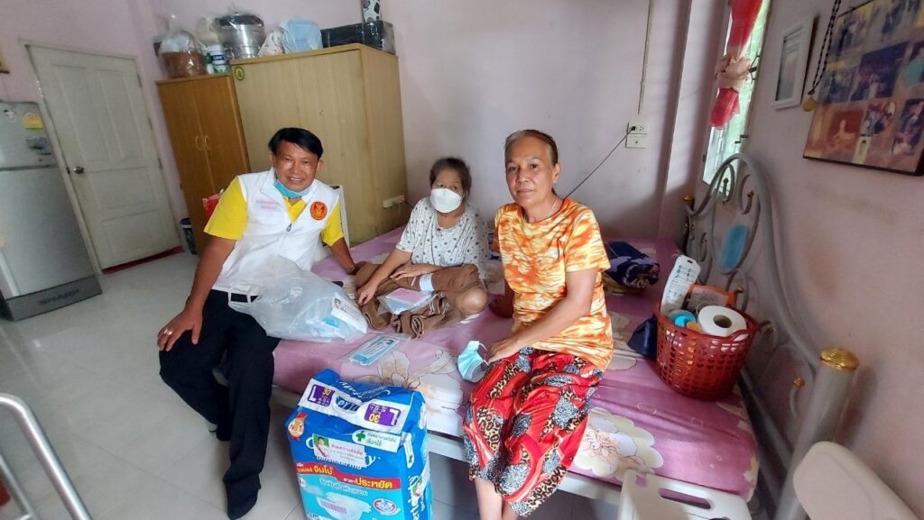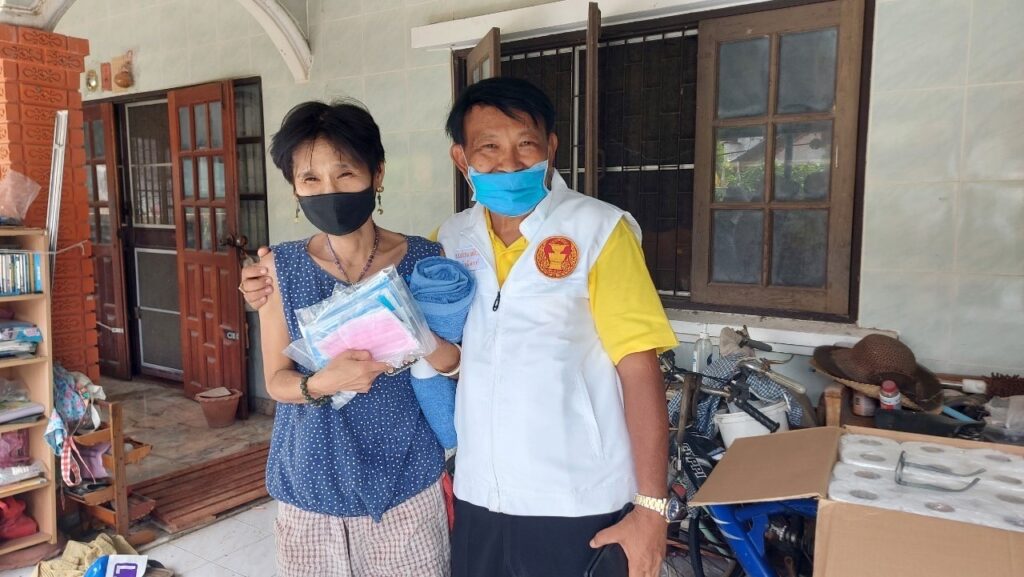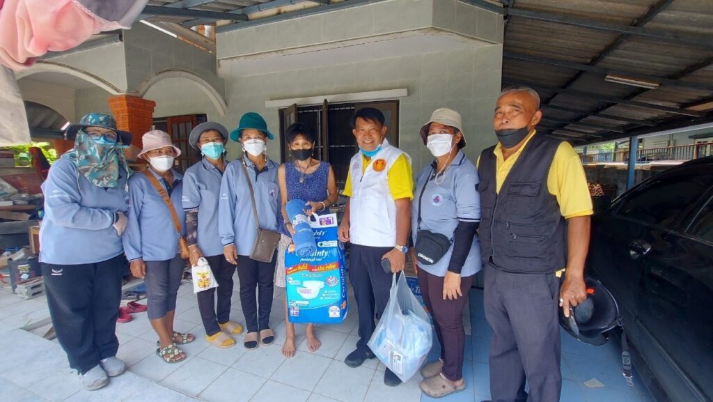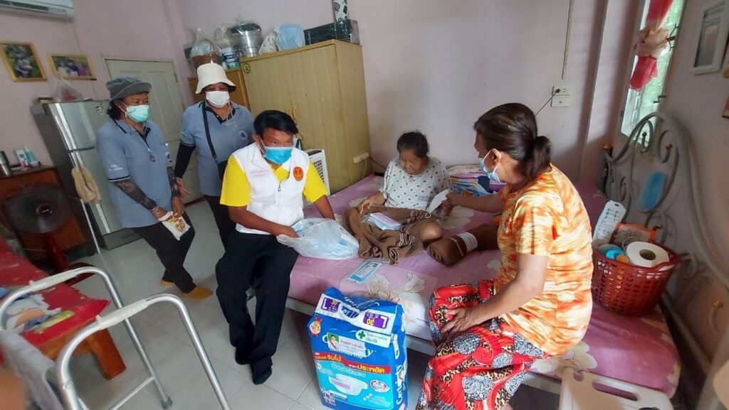 ลงพื้นที่ เยี่ยมประชาชน ที่ป่วยติดเตียง กลุ่มเปราะบาง (ผู้สูงอายุ ผู้พิการ ผู้ด้อยโอกาส ฯลฯ) ที่ไม่สามารถช่วยเหลือตนเองได้โดยได้มอบ เครื่องอุปโภค บริโรค และหน้ากากอนามัย เพื่อเป็นการเยี่ยมเยียนให้กำลังใจ และเป็นการช่วยเหลือเบื้องต้น แก่ประชาชน