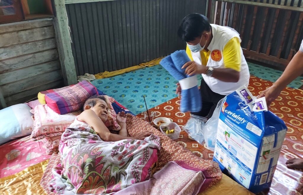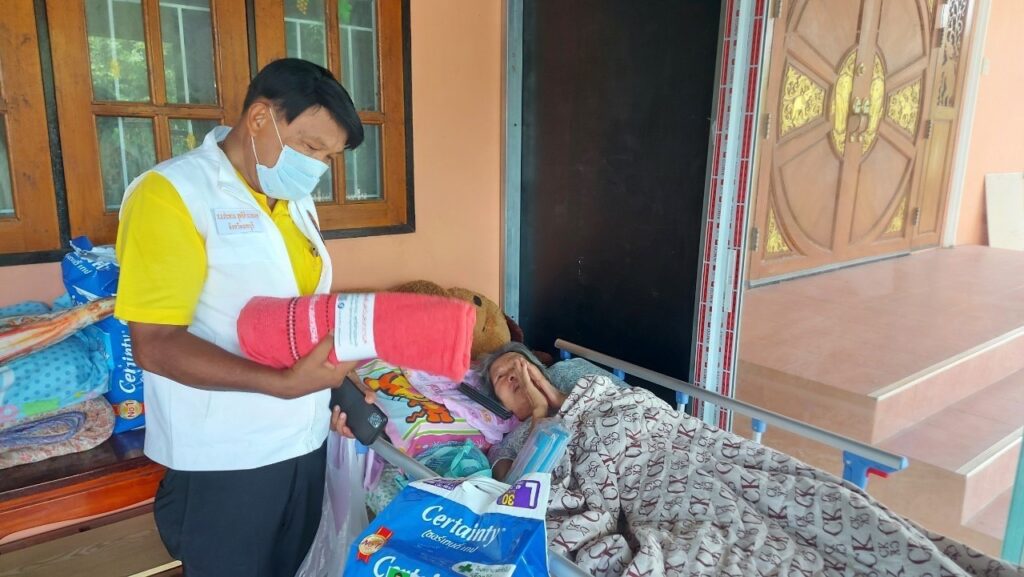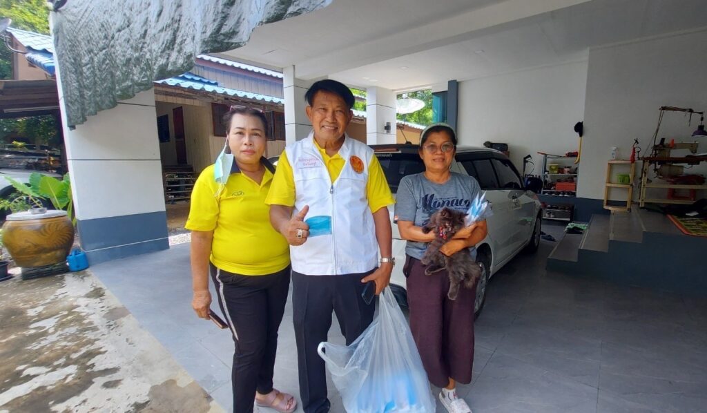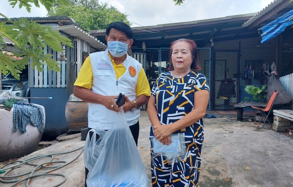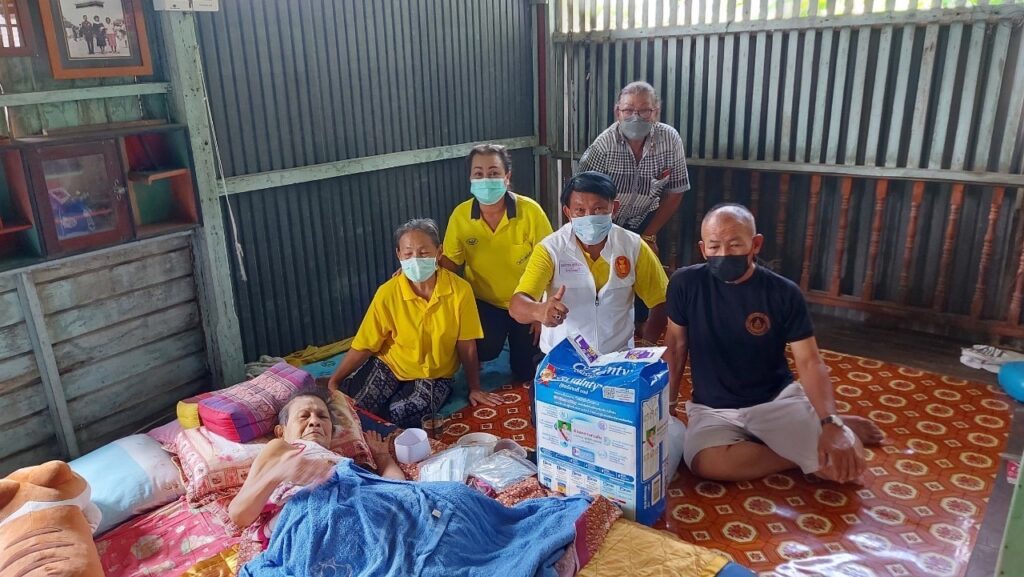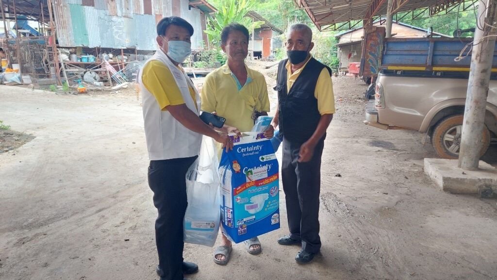 ลงพื้นที่ เยี่ยมประชาชน ที่ป่วยติดเตียง กลุ่มเปราะบาง (ผู้สูงอายุ ผู้พิการ ผู้ด้อยโอกาส ฯลฯ) ที่ไม่สามารถช่วยเหลือตนเองได้โดยได้มอบ เครื่องอุปโภค บริโรค และหน้ากากอนามัย เพื่อเป็นการเยี่ยมเยียนให้กำลังใจ และเป็นการช่วยเหลือเบื้องต้น แก่ประชาชน