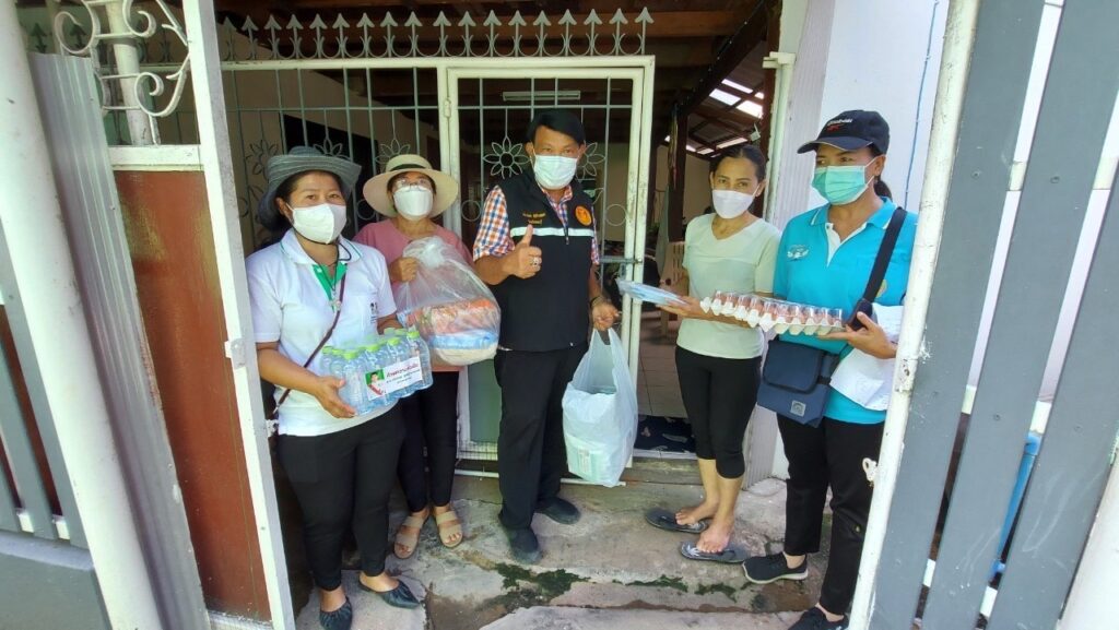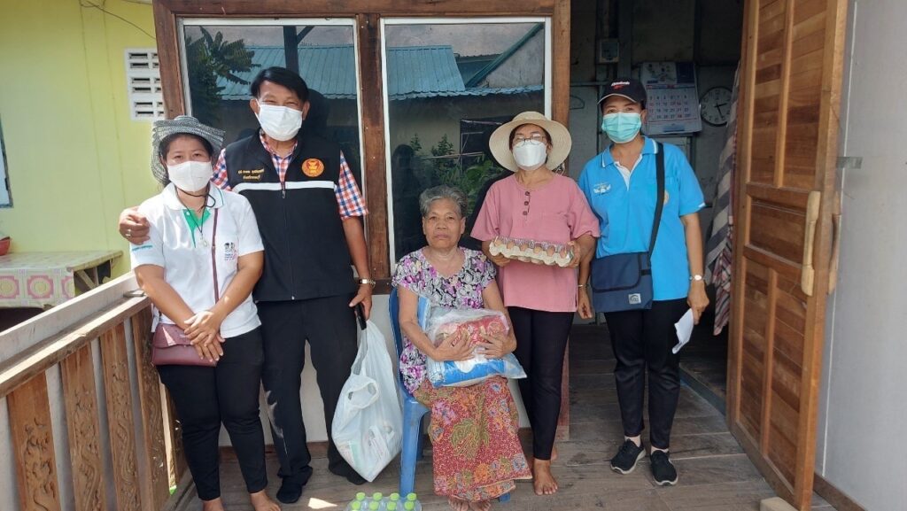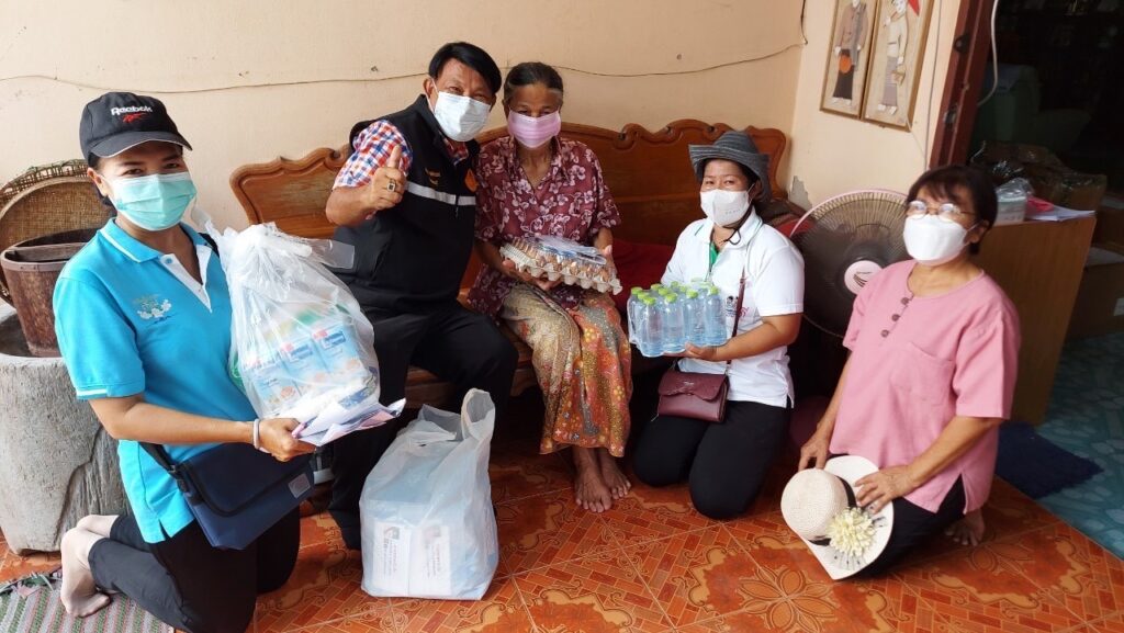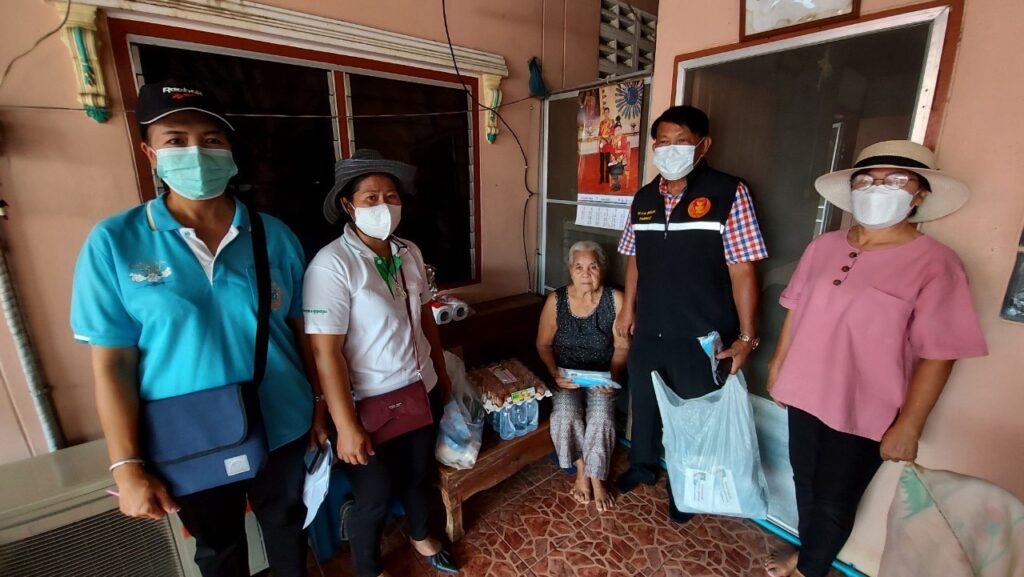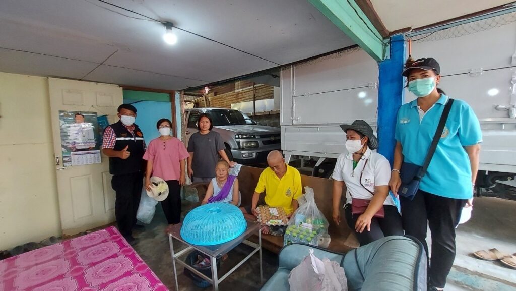 ลงพื้นที่ เยี่ยมประชาชน ที่ป่วยติดเตียง กลุ่มเปราะบาง (ผู้สูงอายุ ผู้พิการ ผู้ด้อยโอกาส ฯลฯ) ที่ไม่สามารถช่วยเหลือตนเองได้โดยได้มอบ เครื่องอุปโภค บริโภค และหน้ากากอนามัย เพื่อเป็นการเยี่ยมเยียนให้กำลังใจ และเป็นการช่วยเหลือเบื้องต้น แก่ประชาชน