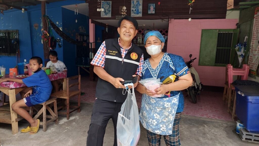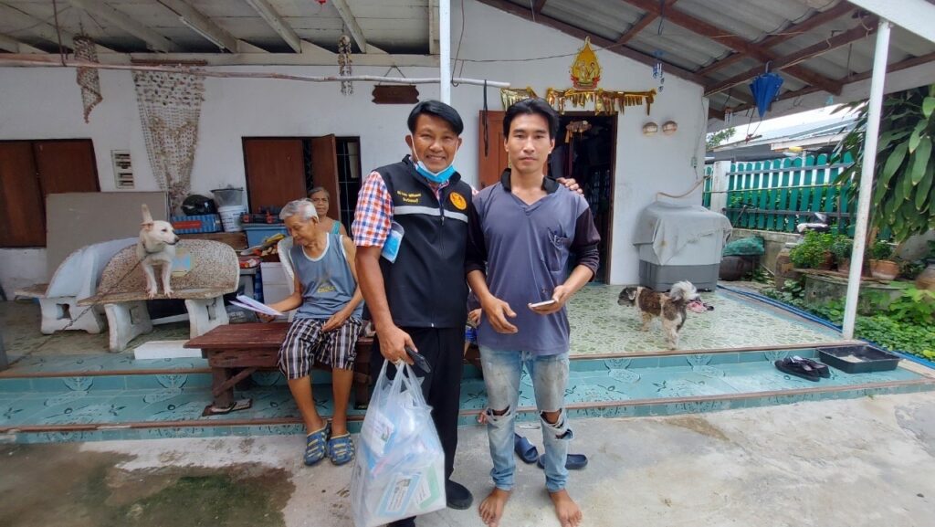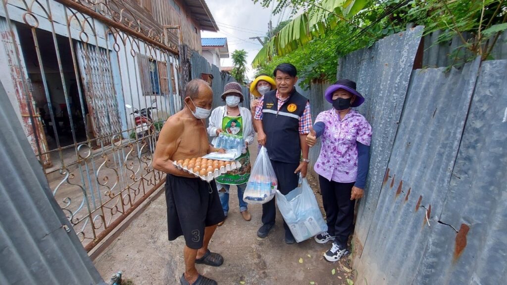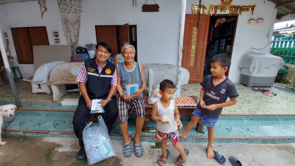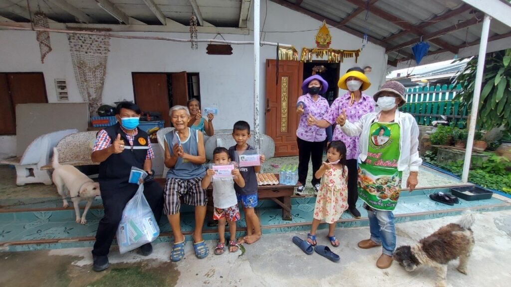 ลงพื้นที่ เยี่ยมประชาชน ที่ป่วยติดเตียง กลุ่มเปราะบาง (ผู้สูงอายุ ผู้พิการ ผู้ด้อยโอกาส ฯลฯ) ที่ไม่สามารถช่วยเหลือตนเองได้โดยได้มอบ เครื่องอุปโภค บริโภค และหน้ากากอนามัย เพื่อเป็นการเยี่ยมเยียนให้กำลังใจ และเป็นการช่วยเหลือเบื้องต้น แก่ประชาชน