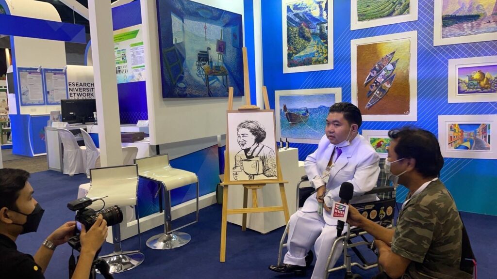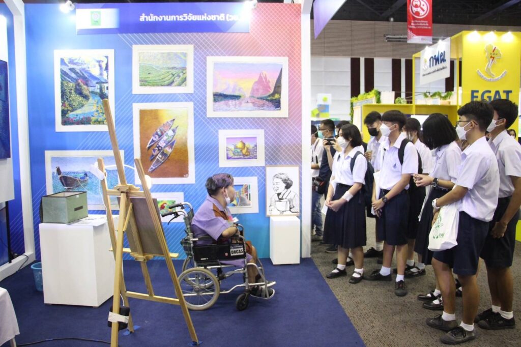 ดร.วิภารัตน์ ดีอ่อง ผู้อำนวยการสำนักงานการวิจัยแห่งชาติ (วช.) กล่าวว่า (วช.) ร่วมกับเครือข่ายในระบบวิจัยทั่วประเทศ ได้นำผลงานวิจัยกว่า 500 ผลงานมาแสดงในมหกรรมงานวิจัยแห่ง 2565 ซึ่งล้วนแต่เป็นนวัตกรรมผลงานการวิจัยที่โดดเด่น สามารถนำไปต่อยอดใช้ประโยชน์ในวิถีชีวิตประจำวัน รวมถึงเป็นต้นแบบในการพัฒนาศักยภาพทั้งทางด้านเศรษฐกิจ สังคม คุณภาพชีวิตและสิ่งแวดล้อม หนึ่งในนั้นคือนวัตกรรมผลงานภาพวาดอย่างวิจิตรบรรจง ของหนุ่มพิการโซคูล ภายใต้ผลงานพลังแห่งปัญญา สู่พลังแห่งการพัฒนาคุณภาพชีวิตผู้พิการ หวังสร้างแรงบันดาลใจให้กับเยาวชนและคนพิการในงานศิลปะวิจิตรศิลป์ รวมทั้งความสามารถด้านอื่นๆของผู้พิการ ที่สามารถแสดงศักยภาพให้สังคมได้เห็นว่าผุ้พิการไม่ได้สร้างภาะระให้กับสังคม และสามารถทำคุณประโยชน์ได้อีกมากมาย ทั้งเพื่อเลี้ยงชีพให้กับตัวเอง และสร้างชื่อสร้างให้กับประเทศชาติ