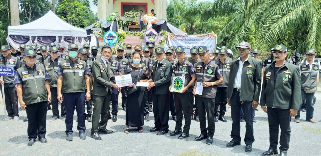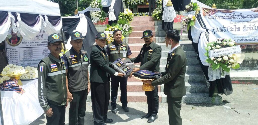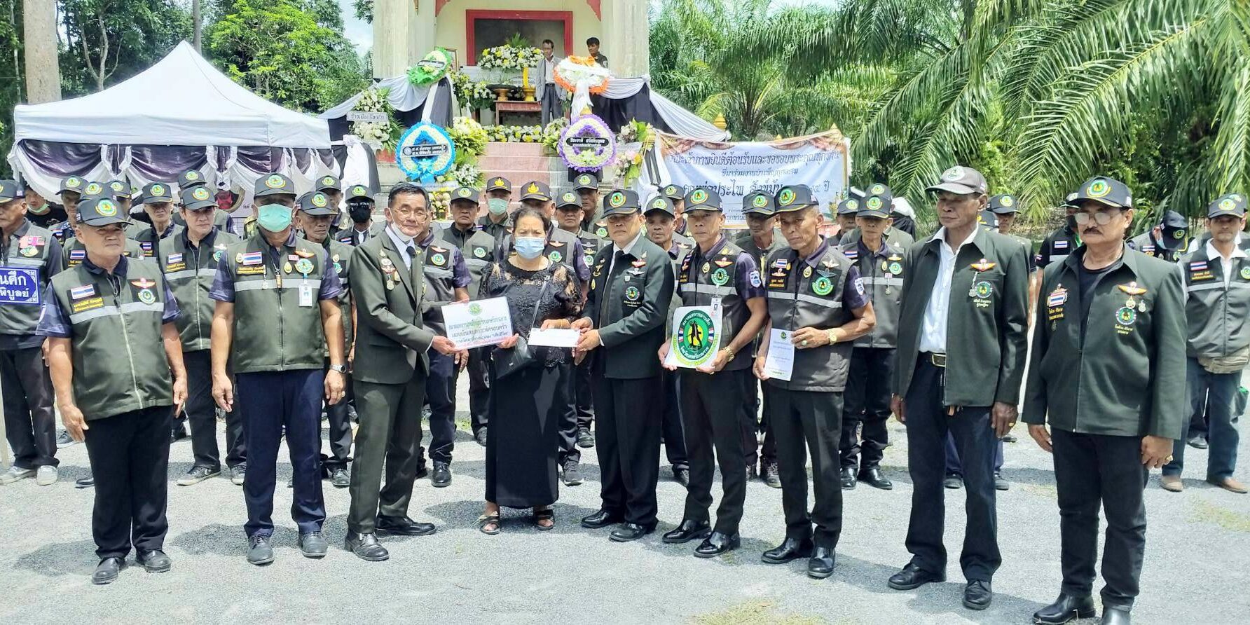 วันนี้ จ่าสิบเอก รุ่งวิทย์ มีภพ นายกสมาคมทหารผ่านศึกจังหวัดนครศรีธรรมราช / ประธานสมาพันธ์สมาคมทหารผ่านศึกภาคใต้ พร้อมด้วยอุปนายกสมาคม ประธานศูนย์ ประธานชมรมอำเภอ ประธานชมรมตำบล สมาชิกสมาคม และสมาชิกสมทบสมาคมทหารผ่านศึกจังหวัดนครศรีธรรมราช ร่วมพิธีฌาปนกิจศพ พลทหาร ประไพ สังข์มัน สมาชิกสมาคมสังกัดชมรมทหารผ่านศึกอำเภอร่อนพิบูลย์ ณ วัดสามัคยาราม ต.หินตก อ.ร่อนพิบูลย์ โดย สมาคมได้จัดกองเชิดชูเกียรติเคารพศพเพิ่อผดุงเกียรติให้กับสมาชิกสมาคม จำนวน 50 ราย ซึ่งจัดให้มีพลแตรเดี่ยวจาก มทบ.41 มากำหนดพิธีการ โดยมี พันตำรวจโท สมศักดิ์ สัจจะบุญทวี รองประธานศูนย์ ฯ เป็นผู้บังคับการกองผสมกองเชิดชูเกียรติสมาคมทหารผ่านศึกจังหวัดนครศรีธรรมราช