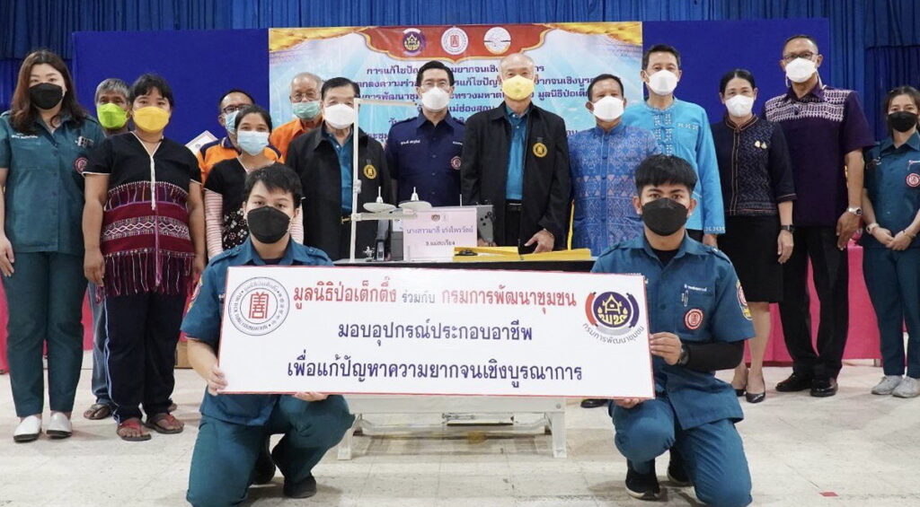 ซึ่งในปี พ.ศ. 2564 เป็นต้นมาจนถึงปัจจุบัน มูลนิธิป่อเต็กตึ๊ง ได้มอบวัสดุอุปกรณ์ประกอบอาชีพในพื้นที่ภาคเหนือ ประกอบด้วย จังหวัดอุทัยธานี สุโขทัย พิษณุโลก พิจิตร นครสวรรค์ กำแพงเพชร เพชรบูรณ์ พะเยา เชียงราย น่าน เชียงใหม่ ลำพูน ลำปาง แพร่ อุตรดิตถ์ ตาก และแม่ฮ่องสอน รวม 17 จังหวัด จำนวน 210 ครัวเรือน มอบวัสดุอุปกรณ์ประกอบอาชีพทั้งสิ้น จำนวน 3,153,000 บาท (สามล้านหนึ่งแสนห้าหมื่นสามพันบาทถ้วน)