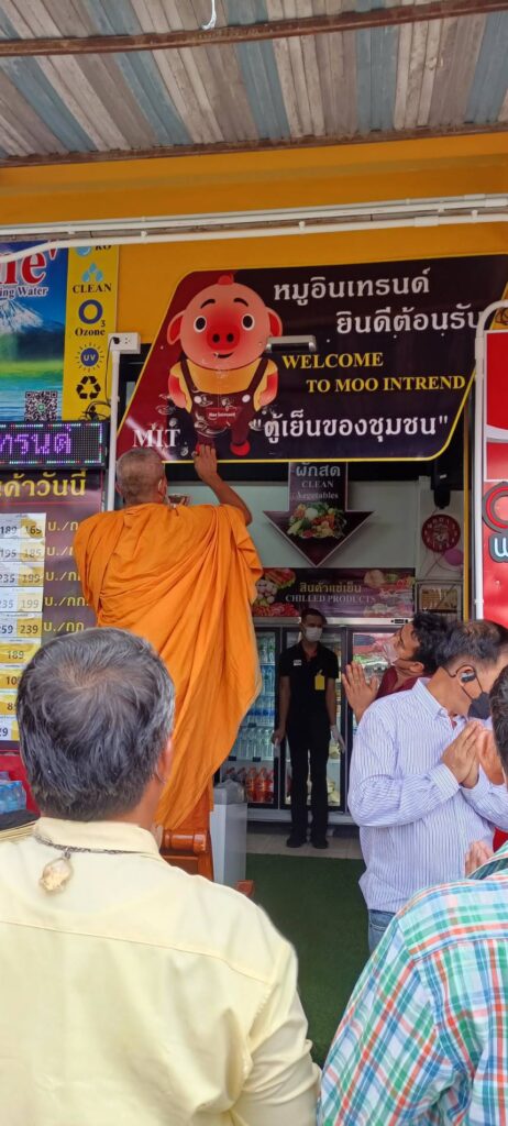 เมื่อวันศุกร์ที่ 5 สิงหาคม 2565 ที่ ร้านหมูอินเทรนด์ หน้าที่ว่าการอำเภอสรรคบุรี จังหวัดชัยนาท : คุณจิตตานันท์ เทพแก้ว ประธานกรรมการบริหารบริษัท เอ็มไอที อินเตอร์ฟูดส์ จำกัด ผู้บริหาร “หมูอินเทรนด์” เปิดสาขา 3 หน้าที่ว่าการอำเภอสรรคบุรี จ.ชัยนาท ได้ฤกษ์ดีเวลา 09.39 น. ทำพิธีเจิมป้าย โดยพระครูโฆสิตพัฒนคุณ (บุญยัง ฐานวโร) เจ้าอาวาสวัดโฆสิตาราม (บ้านแค) รองเจ้าคณะอำเภอสรรคบุรี ให้เกียรติมาเป็นประธานเจิมป้ายเพื่อเพิ่มความเป็นสิริมงคล โดยมีผู้ร่วมงาน ร่วมกันตัดริบบิ้นเปิดร้าน “หมูอินเทรนด์” ตู้เย็นชุมชน สาขา 3 สรรคบุรี และได้รับเกียรติจาก คุณสมภาร เคารพธรรม