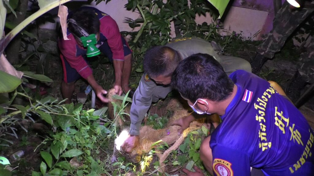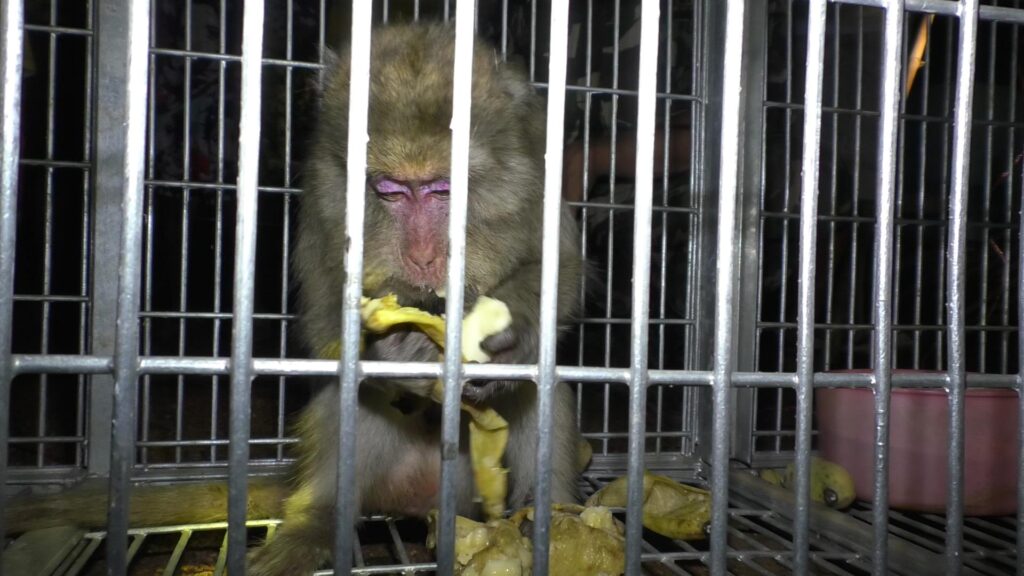 เมื่อเจ้าหน้าที่ไปถึง ก็พบว่า ลิงป่าตัวดังกล่าว ได้หลบอยู่บนยอดต้นมะม่วง ความสูงกว่า 7 เมตรภายในบริเวณบ้านของ นางบานชื่น ทีเป้า อายุ 66 ปี บ้านเลขที่ 18 หมู่ 9 ตำบลท้ายดง อำเภอวังโป่ง จังหวัดเพชรบูรณ์ เจ้าหน้าที่จึงได้ร่วมกันวางแผนกับชาวบ้าน โดยแบ่งกำลังส่วนหนึ่ง ขึ้นรถกระเช้า นำบ่วงขึ้นไปจับด้านบน และอีกส่วนหนึ่งรออยู่ด้านล่าง พร้อมเซียนแห อีกนับ 10 คน ที่ขึ้นแหเตรียมหว่าน และทันที ที่เห็นว่าลิงป่าหนีลงจากต้นมะม่วง บรรดาเซียนแห ก็ไม่พลาด สามารถหว่านแหจับลิงป่าได้สำเร็จ และนำตัวไปใส่กรงได้อย่างปลอดภัย ตรวจสอบพบว่าเป็น ลิงแสม เพศเมีย น้ำหนักตัวราว 6 กิโลกรัม มีอาการอ่อนล้าและหิวโซ เจ้าหน้าที่จึงนำผลไม้มาให้ลิงป่า ซึ่งก็รีบกินด้วยอาการหิวโซ เบื้องต้น พบว่าลิงป่าตัวนี้ มีบาดแผลที่หน้าท้อง จนเริ่มเน่า คาดว่าน่าจะกัดกันกับลิงตัวอื่น ก่อนหนีออกมาจากฝูง และหลงเข้ามาในชุมชน จนถูกจับตัวได้สำเร็จ ซึ่งทาง เจ้าหน้าที่เขตห้ามล่าสัตว์ป่าวังโป่ง-ชนแดน ก็จะได้นำไปพักฟื้นและอนุบาลไว้จนกว่าลิงป่าจะหายดีและแข็งแรง ถึงจะนำไปปล่อยคืนสู่ธรรมชาติต่อไป