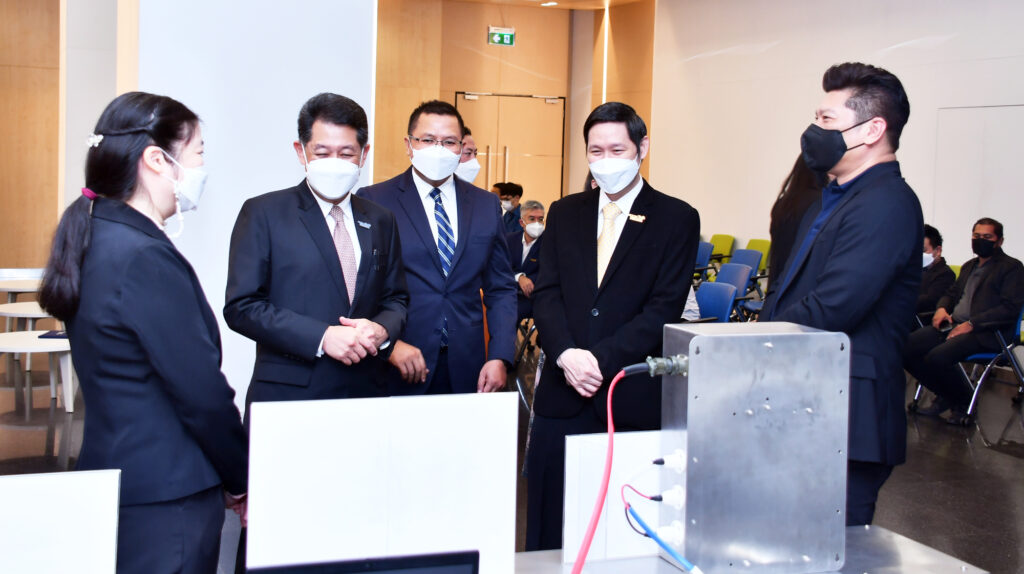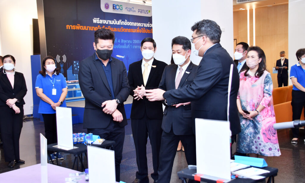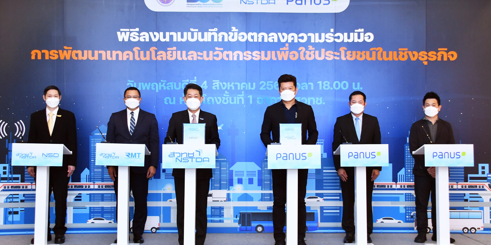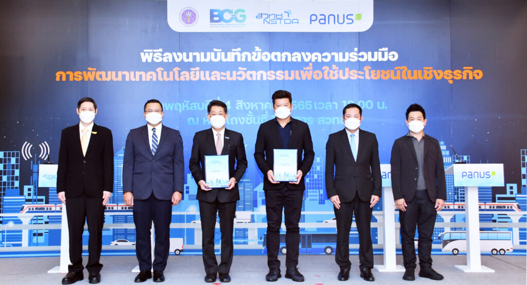 เมื่อวันที่ 4 สิงหาคม 2565 ณ ห้องโถงชั้นที่ 1 อาคาร (สวทช.) ถนนพระรามที่ 6 : ดร.ณรงค์ ศิริเลิศวรกุล ผู้อำนวยการสำนักงานพัฒนาวิทยาศาสตร์และเทคโนโลยีแห่งชาติ (สวทช.) พร้อมด้วย ดร.เอกรัตน์ ไวยนิตย์ ผู้อำนวยการศูนย์วิจัยเทคโนโลยีระบบรางและการขนส่งสมัยใหม่ (สวทช.) และดร.ศิวรักษ์ ศิวโมกษธรรม ผู้อำนวยการศูนย์เทคโนโลยีเพื่อความมั่นคงของประเทศและการประยุกต์เชิงพาณิชย์ (สวทช.) ร่วมพิธีลงนามบันทึกข้อตกลงความร่วมมือ การพัฒนาเทคโนโลยีและนวัตกรรมเพื่อใช้ประโยชน์ในธุรกิจอุตสาหกรรมระหว่าง (สวทช.) และ บริษัท พนัส แอสเซมบลีย์ จำกัด นำโดย นายพนัส วัฒนชัย ประธานกรรมการบริหาร บริษัท พนัส แอสเซมบลีย์ จำกัด คุณเกริก กลมเกลียว ผู้จัดการฝ่ายวิศวกรรม และดร.วิมล แสนอุ้ม ผู้อำนวยการหน่วยธุรกิจนวัตกรรม บริษัท พนัส แอสเซมบลีย์ จำกัด เข้าร่วมงานและเป็นสักขีพยานในการลงนาม