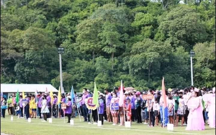 วันที่ 6 สิงหาคม 2565 ที่สนามกีฬาองค์การบริหารส่วนตำบลเกาะสำโรง อำเภอเมือง จังหวัดกาญจนบุรี นายธนณัฏ ศรีสันต์ นายอำเภอเมืองกาญจนบุรี เป็นประธานเปิดกีฬา 9 สัมพันธ์ ต้านภัยยาเสพติด โดยมี นายธนาสิทธิ์ จันทร์โสม หรือนายกฯอ๊อด ลูกกตัญญู นักพัฒนาท้องถิ่น นายกองค์การบริหารส่วนตำบลเกาะสำโรง กล่าวรายงานถึงวัตถุประสงค์พร้อมด้วย นายจะตุพร ชื่นพล หรือกำนันดำ กำนันตำบลเกาะสำโรง อำเภอเมือง จังหวัดกาญจนบุรี นายณัฐพล ภู่ทองชิน หรือ สจ.บุ้ง สมาชิกสภา อบจ.กาญจนบุรี เขต 1 อำเภอเมืองกาญจนบุรี ข้าราชการ พนักงาน เจ้าหน้าที่ ลูกจ้างประจำ ลูกจ้างชั่วคราว และประชาชน ร่วมกิจกรรมดังกล่าว