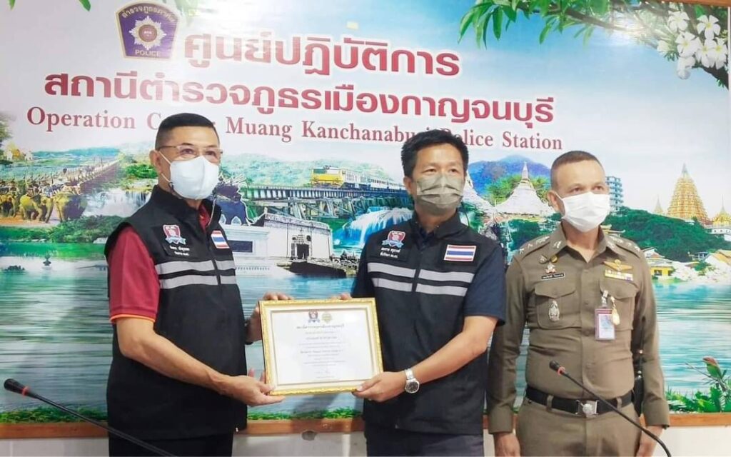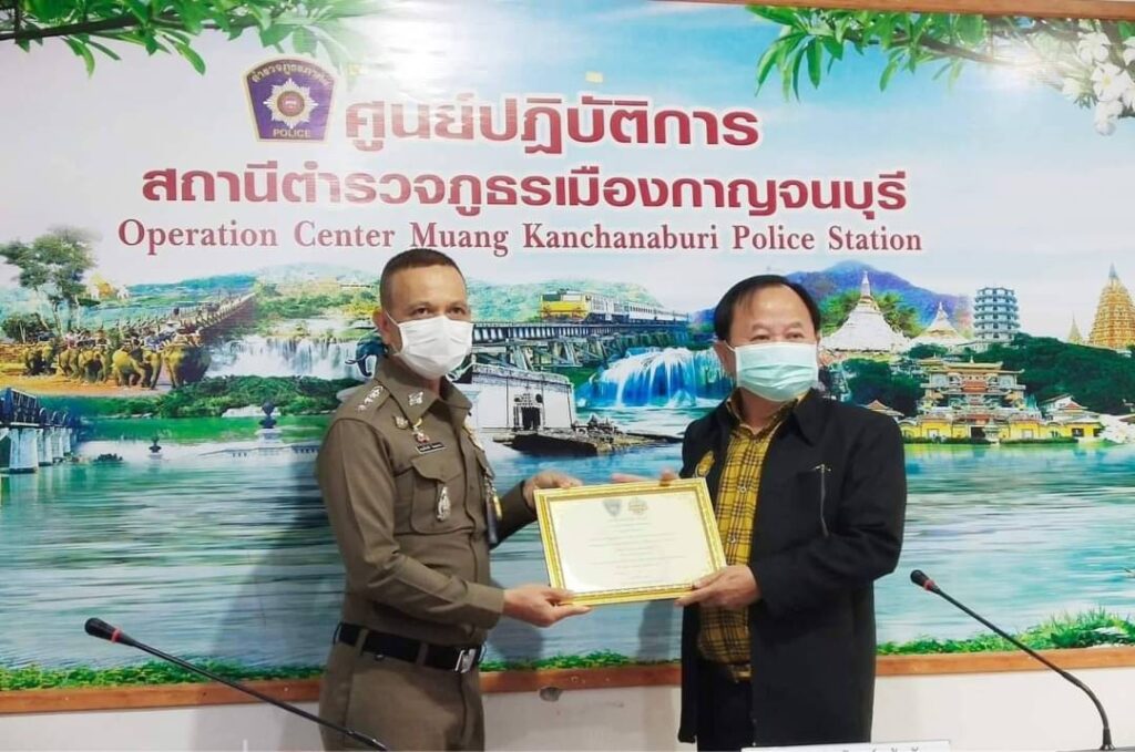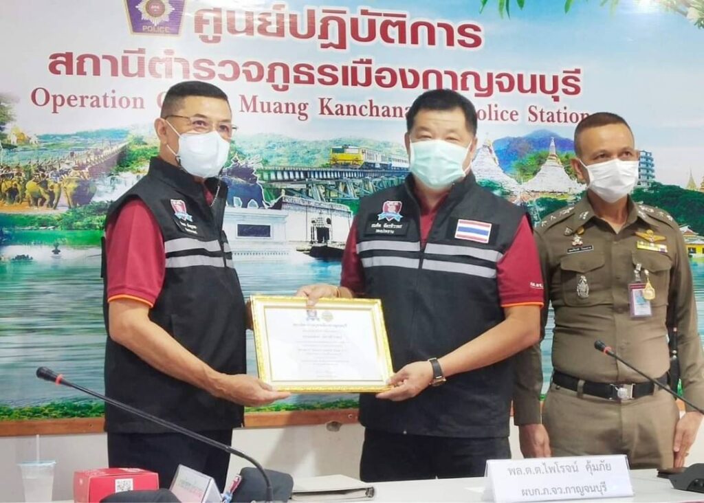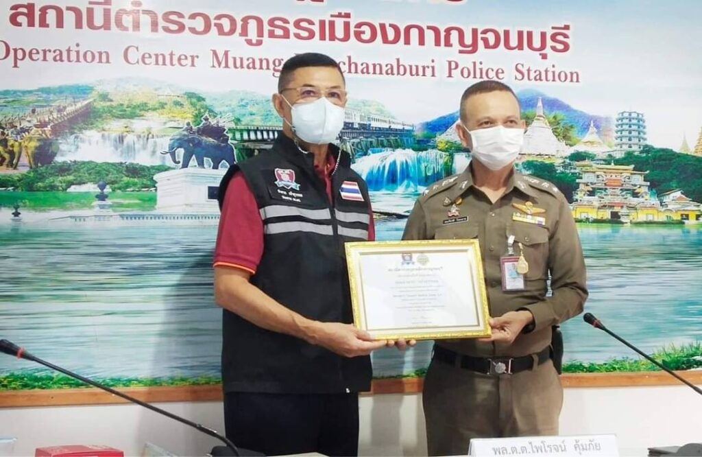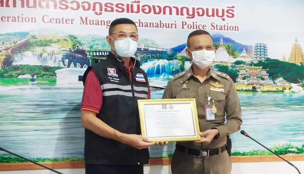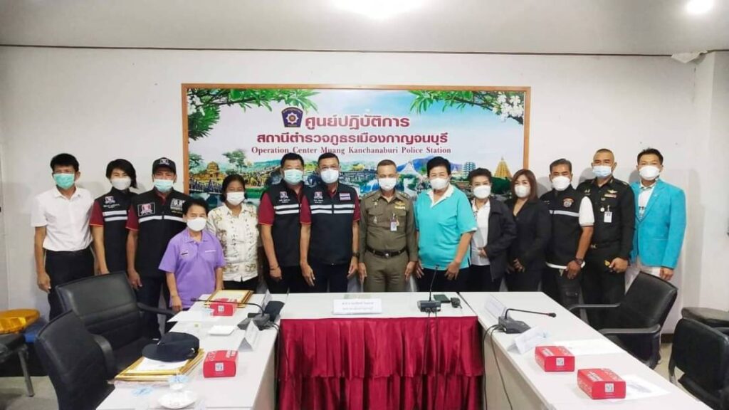 วันนี้ 6 สิงหาคม 2565 เวลา 17:00 น. เมืองกาญจน์ 1พ.ต.อ.สมเกียรติ โฉมฉายผกก.สภ.เมืองกาญจนบุรี. เมืองกาญจน์ 4 พ.ต.ท.วศิน พลายศิริ รอง ผกก.สส.สภ.เมืองกาญจนบุรี เมืองกาญจน์ 6 พ.ต.ท.มงคล พรหมเมศร์ รอง ผกก.จร.สภ.เมืองกาญจนบุรี เมืองกาญจน์ 3 พ.ต.ท.ธีรพงษ์ บุญชูวงศ์ รอง ผกก (สอบสวน) สภ.เมืองกาญจนบุรี นายนำลาภ เบ้าสุวรรณ ประธาน กต.ตร.สภ.เมืองกาญจนบุรี คณะ กต.ตร ตัวแทนเทศบาลเมืองกาญจนบุรี ตัวแทน มทบ.17 เจ้าหน้าที่ธุรการ ประธานชุมชน 11 ชุมชน สื่อมวลชน ร่วมพิธีมอบใบประกาศให้กับคณะ กต.ตร.สภ.เมืองกาญจนบุรี ที่ได้ให้การสนับสนุนโครงการ Smart Safety Zone 4.0 พร้อมทั้งร่วมพิธีเปิดโครงการประกาศความสำเร็จและพิธีมอบรางวัลสถานีชนะเลิศตามโครงการ Smart Zone 4.0 ประจำปี 2565 ผ่านระบบ Live Zoom พร้อมกันทั้ง 100 สถานีทั่วประเทศ ณ ห้องประชุม ศปก.สภ.เมืองกาญจนบุรี ชั้น 2.