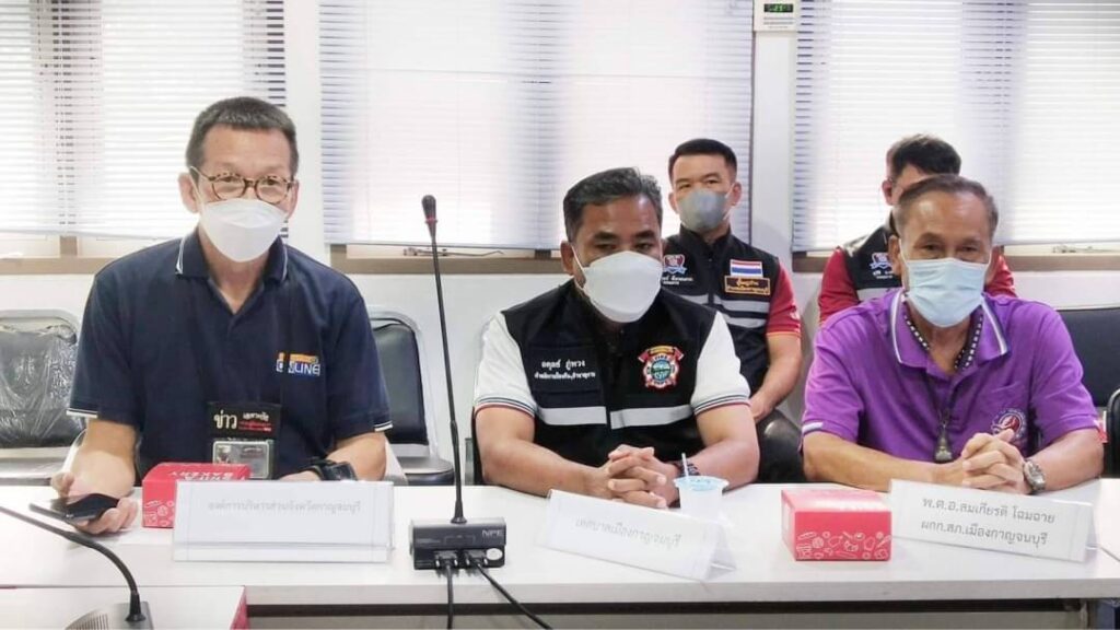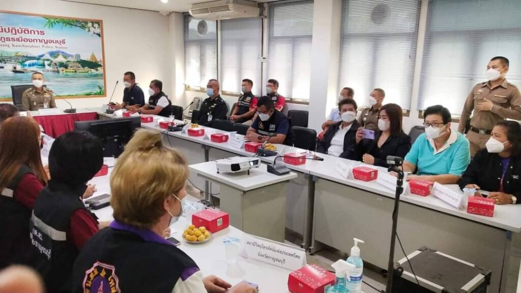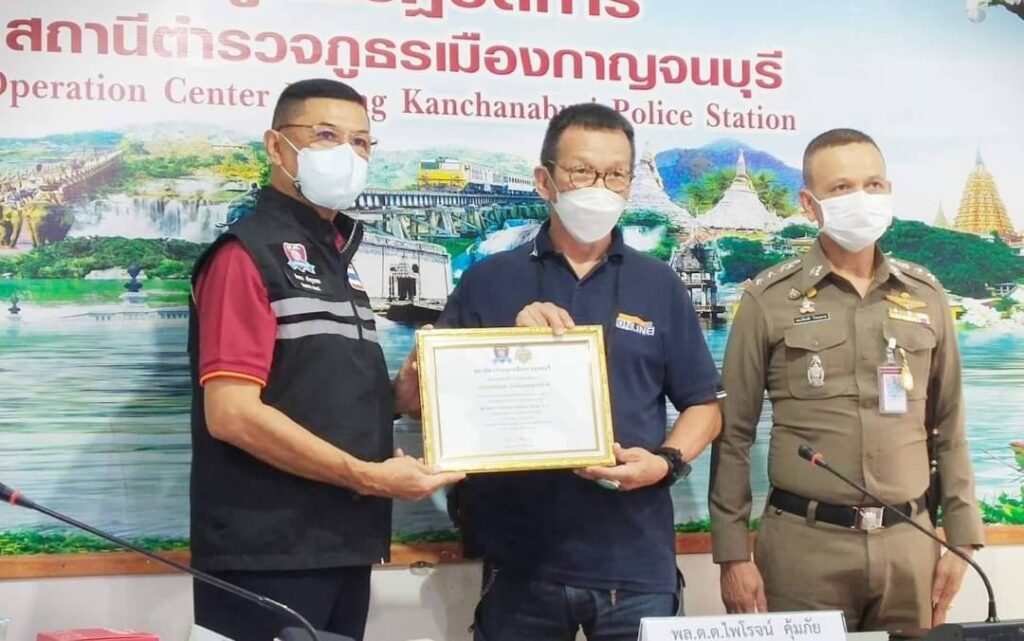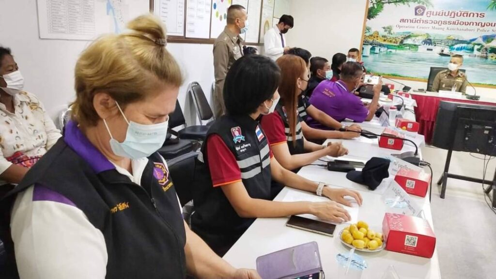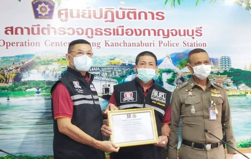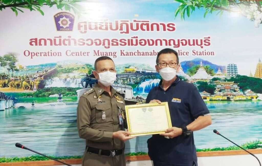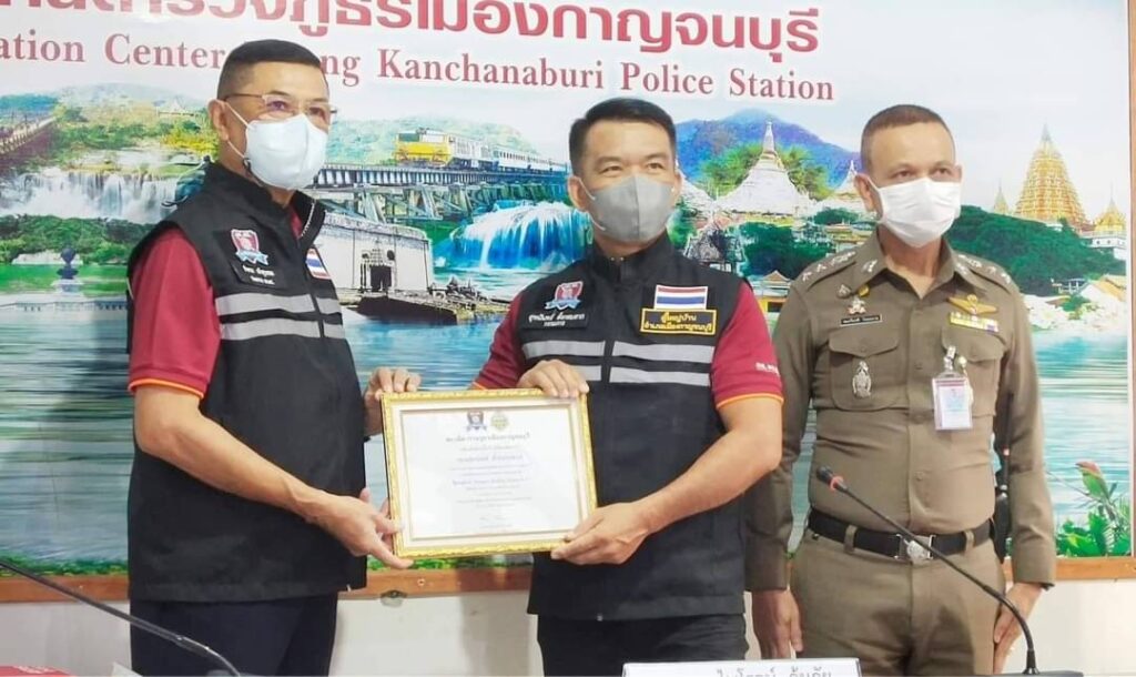 วันนี้ 6 สิงหาคม 2565 เวลา 17:00 น. เมืองกาญจน์ 1พ.ต.อ.สมเกียรติ โฉมฉายผกก.สภ.เมืองกาญจนบุรี. เมืองกาญจน์ 4 พ.ต.ท.วศิน พลายศิริ รอง ผกก.สส.สภ.เมืองกาญจนบุรี เมืองกาญจน์ 6 พ.ต.ท.มงคล พรหมเมศร์ รอง ผกก.จร.สภ.เมืองกาญจนบุรี เมืองกาญจน์ 3 พ.ต.ท.ธีรพงษ์ บุญชูวงศ์ รอง ผกก (สอบสวน) สภ.เมืองกาญจนบุรี นายนำลาภ เบ้าสุวรรณ ประธาน กต.ตร.สภ.เมืองกาญจนบุรี คณะ กต.ตร ตัวแทนเทศบาลเมืองกาญจนบุรี ตัวแทน มทบ.17 เจ้าหน้าที่ธุรการ ประธานชุมชน 11 ชุมชน สื่อมวลชน ร่วมพิธีมอบใบประกาศให้กับคณะ กต.ตร.สภ.เมืองกาญจนบุรี ที่ได้ให้การสนับสนุนโครงการ Smart Safety Zone 4.0 พร้อมทั้งร่วมพิธีเปิดโครงการประกาศความสำเร็จและพิธีมอบรางวัลสถานีชนะเลิศตามโครงการ Smart Zone 4.0 ประจำปี 2565 ผ่านระบบ Live Zoom พร้อมกันทั้ง 100 สถานีทั่วประเทศ ณ ห้องประชุม ศปก.สภ.เมืองกาญจนบุรี ชั้น 2.