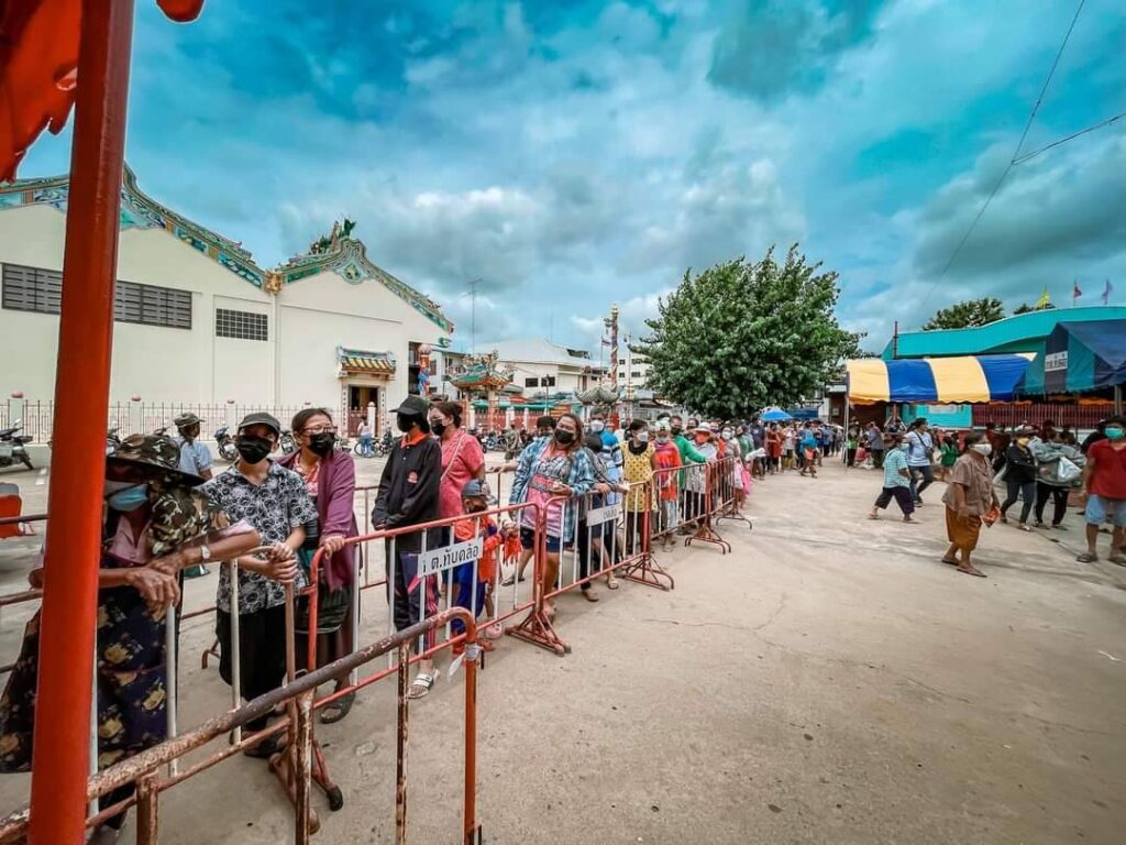สำหรับการจัดงานประเพณีเทกระจาด ประจำปี 2565 นี้ ได้รับความร่วมมือจาก คณะกรรมการมูลนิธิฯ คณะกรรมการเถ่านั้ง ข้าราชการ ผู้นำท้องที่ ผู้นำท้องถิ่น พ่อค้า ประชาชน ภาคส่วนต่าง ๆ ที่ได้พร้อมใจกันบริจาคทุนทรัพย์ ตามกำลังศรัทธา เพื่อจัดหาเครื่องไหว้ จัดหาอาหาร และ จัดหาเครื่องอุปโภคบริโภค พร้อมทั้งมีผู้ใจบุญได้ร่วมออกโรงทานทำบุญแจกจ่ายแก่พี่น้องประชาชนที่มาร่วมรับของทิ้งกระจาดในวันนี้ นอกจากนี้ในช่วงที่ผ่านมาส.ส.ภูดิท อินสุวรรณ์ พิจิตรเขต2ได้ไปร่วมงานประเพณีทิ้งกระจาดที่ศาลเจ้าพ่อเขาทรายและศาลเจ้าพ่อตะพานหินอีกด้วย