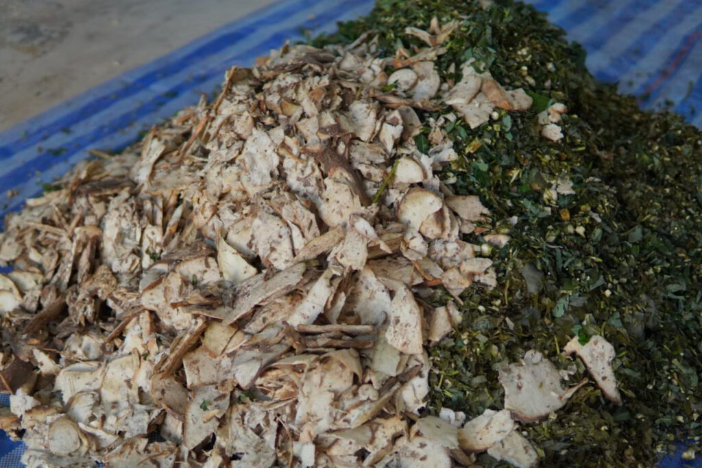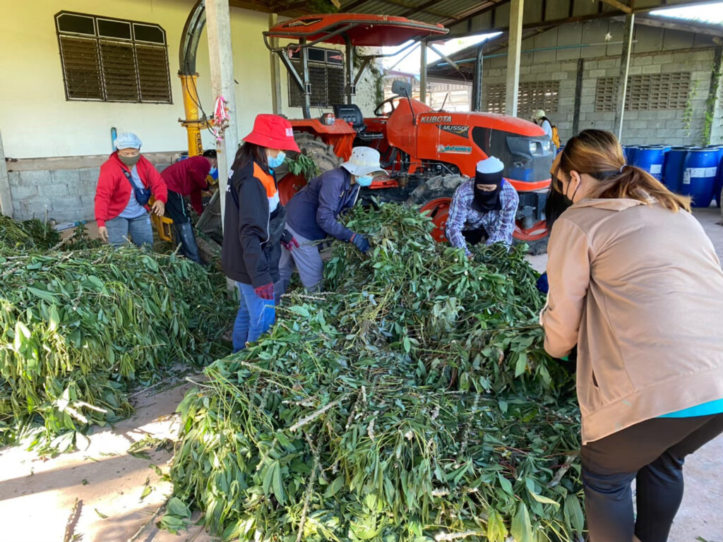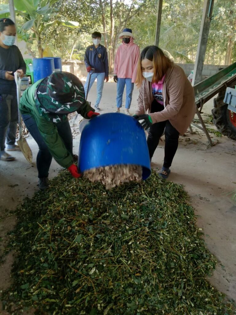 คณะนักวิจัยได้ทำการเก็บตัวอย่างวัตถุดิบอาหารสัตว์เพื่อวิเคราะห์คุณภาพในห้องปฏิบัติการก่อนทำการประกอบสูตรอาหารข้น พร้อมทั้งพัฒนาสูตรอาหารหมักที่ใช้สัดส่วนของใบและหัวมันสำปะหลังหมักที่เหมาะสมสำหรับเลี้ยงขุนโค พร้อมทั้งอบรมเพิ่มทักษะความชำนาญในการผลิตอาหารสัตว์เพื่อใช้เองภายในกลุ่มเกษตรกร พบว่าเกษตรกรสามารถดำเนินการผลิตอาหารข้น และอาหารหมักเพื่อใช้เองภายในฟาร์มสำหรับเลี้ยงขุนโคของสมาชิก