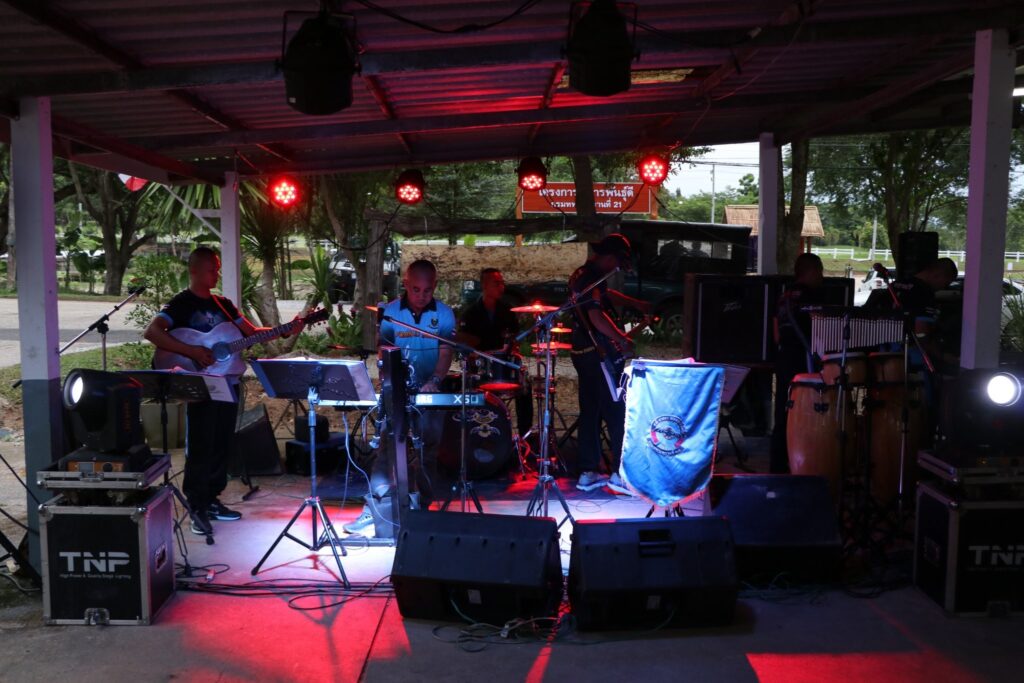 วันที่ 7 สิงหาคม 2565 ผู้สื่อข่าวรายงานว่า กองกำลังสุรศักดิ์มนตรี โดย พันเอก อุทัย นิลเนตร ผู้บังคับการกรมทหารพรานที่ 21/ผู้บังคับหน่วยเฉพาะกิจกรมทหารพรานที่ 21และคุณสิริกัญญา นิลเนตร ประธานสมาคมแม่บ้านทหารบกสาขากรมทหารพรานที่ 21 จัดเลี้ยงหมูกระทะร้อนๆ พร้อมวงดนตรี PRAN 21 BAND ชุดใหญ่ไฟกระพริบ เล่นดนตรีเติมความสุข “Happy Time”สร้างรอยยิ้มแทนคำขอบคุณในน้ำใจของกำลังพลทุกๆนาย ที่เป็นฟันเฟืองสำคัญในการสร้างความสำเร็จอันยิ่งใหญ่ในประวัติศาสตร์ ในวันที่ 6 ส.ค.65 เวลา 18.52 น.สมเด็จพระกนิษฐาธิราชเจ้า กรมสมเด็จพระเทพรัตนราชสุดาฯ สยามบรมราชกุมารี เสด็จพระราชดำเนินไปทรงติดตามการดำเนินงานโครงการทหารพันธุ์ดี กรมทหารพรานที่ 21 ค่ายศรีสองรัก อำเภอเมือง จังหวัดเลย ซึ่งเข้าร่วมโครงการฯ เมื่อวันที่ 19 กรกฎาคม 2565 โดยปรับปรุงพื้นที่เกษตรของหน่วยประมาณ 10 ไร่ 3 งาน เดิมใช้เป็นพื้นที่ปลูกพืชผักสวนครัวและเลี้ยงไก่ เพื่อให้กำลังพลและครอบครัวใช้บริโภค ที่ผ่านมากำลังพลเข้ารับการอบรมจากศูนย์พัฒนาพันธุ์พืชจักรพันธ์เพ็ญศิริ ทั้งนี้ มีเป้าหมายขยายผลสู่หมู่บ้านในพื้นที่ชายแดนภาคตะวันออกเฉียงเหนือตอนบน ซึ่งกรมทหารพรานที่ 21 วางกำลังป้องกันชายแดน จำนวน 10 กองร้อยทหารพรานในพื้นที่ 12 อำเภอของจังหวัดเลย หนองคาย บึงกาฬ นครพนม และมุกดาหารโดยเป็นการร่วมแรงร่วมใจ แสดงออกด้วยความ รู้ รัก สามัคคี ของกำลังพลเจ้าหน้าที่ทุกนายที่เสียสละทุ่มเทในการดำเนินงาน “โครงการทหารพันธุ์ดี” กรมทหารพรานที่ 21 ค่ายศรีสองรัก จังหวัดเลย ในส่วนวงดนตรี ภายใต้ชื่อ “PRAN 21 BAND” ของกรมทหารพรานที่ 21 ซึ่งเป็นกำลังพลของหน่วยที่มีหัวใจศิลป์ รักงานด้านดนตรีและเสียงเพลงเป็นชีวิตจิตใจ โดยการต่อยอดและสนับสนุนหลักในด้านอุปกรณ์และเครื่องดนตรี จาก พันเอกอุทัย นิลเนตร ผู้บังคับการกรมทหารพรานที่ 21/ผู้บังคับหน่วยเฉพาะกิจกรมทหารพรานที่ 21 (ผู้การโก้) เพื่อส่งเสริมทั้งความรู้และความสามารถสู่การพัฒนางานด้านกำลังพลในการพัฒนาหน่วยต่อไป