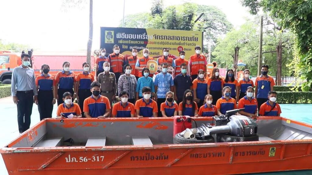 ทั้งนี้ นายเอกภพ จันทร์เพ็ญ ผู้อำนวยการศูนย์ป้องกันและบรรเทาสาธารณภัย เขต 16 ชัยนาท พร้อมเจ้าหน้าที่ได้ส่งมอบ รถปฏิบัติการเคลื่อนย้ายผู้ประสบภัย พร้อมอุปกรณ์ จำนวน 1 คัน เรือท้องแบน พร้อมเครื่องยนต์ จำนวน 2 ลำ และเครื่องสูบน้ำ ขนาดท่อส่ง 14 นิ้ว จำนวน 1 เครื่อง ให้กับ นางสาว นงเยาว์ เทพศิริ หัวหน้าสำนักงานป้องกันและบรรเทาสาธารณภัยจังหวัดสิงห์บุรี และเจ้าหน้าที่สำนักงานป้องกันบรรเทาสาธารณภัยจังหวัดสิงห์บุรี เตรียมความพร้อมเจ้าหน้าที่ วัสดุ อุปกรณ์ และเครื่องจักรกลสาธารณภัยในการเฝ้าระวังและแจ้งเตือนภัย การจัดการในภาวะฉุกเฉิน ตลอดจนการให้ความช่วยเหลือและบรรเทาความเดือดร้อนให้แก่ประชาชนเมื่อเกิดอุทกภัย