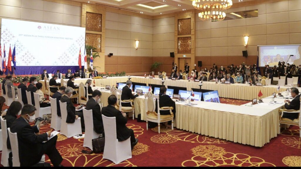 นายหวัง อี้ รมต.ต่างประเทศจีนหารือกับ นายดอน ปรมัตถ์วินัย รมต.ต่างประเทศไทย ในเวทีร่วมมือเอเชียตะวันออก ที่ประเทศกัมพูชา
