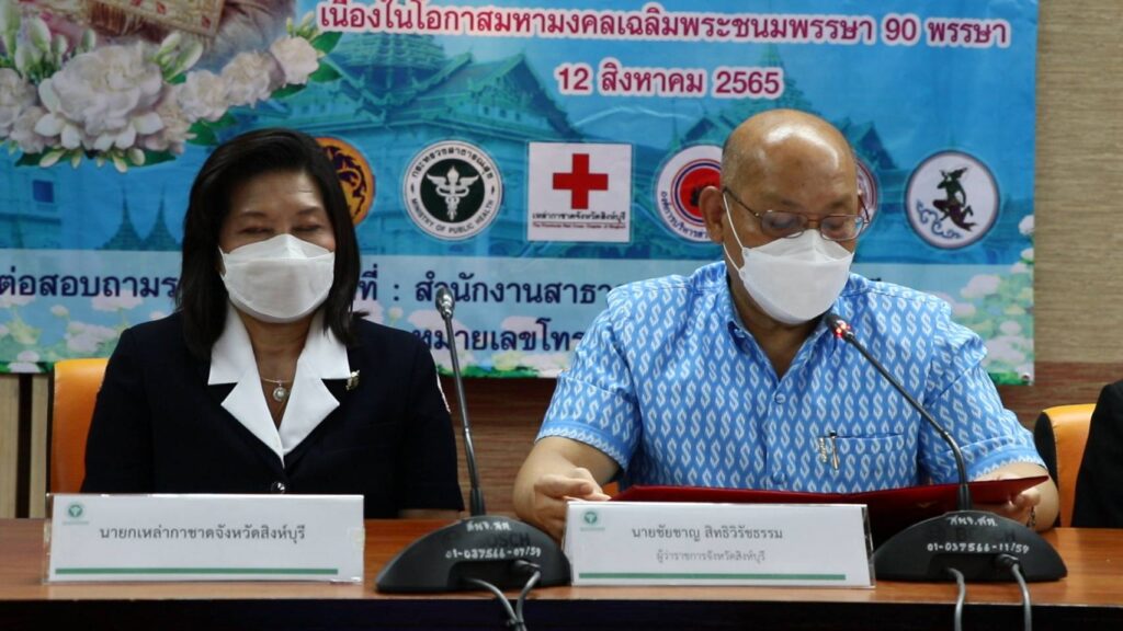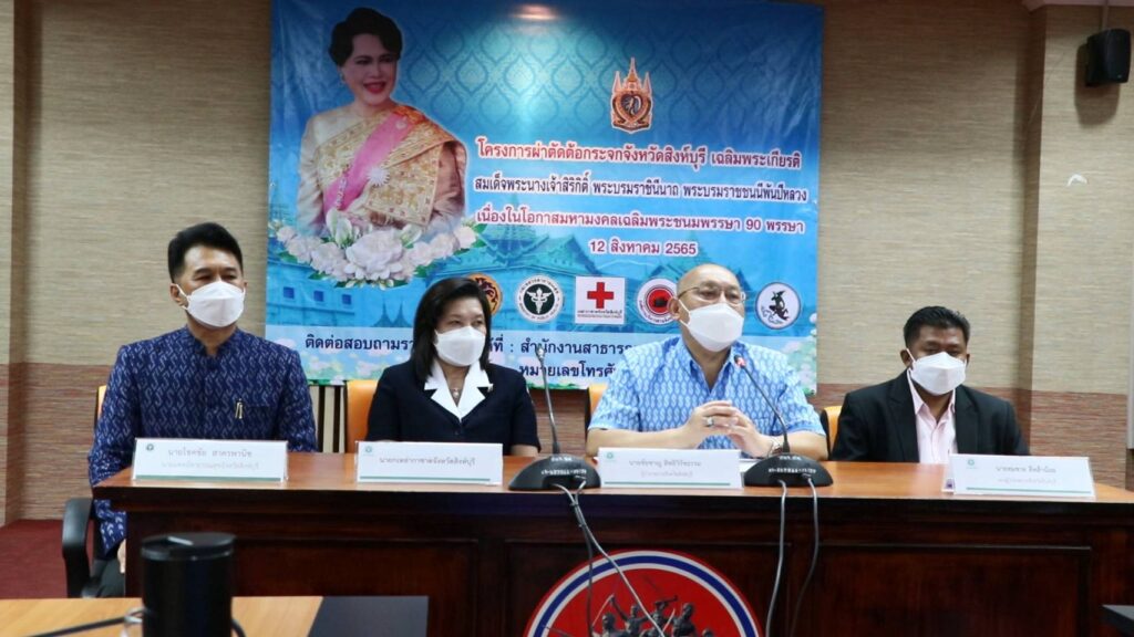 วันที่ 9 สิงหาคม 2565 ณ ห้องประชุมนายทองแสงใหญ่ ชั้น 3 ศาลากลางจังหวัดสิงห์บุรี (หลังใหม่)นายชัยชาญ สิทธิวิรัชธรรม ผู้ว่าราชการจังหวัดสิงห์บุรี พร้อมนายแพทย์โชคชัย สาครพานิช สาธารณสุขจังหวัดสิงห์บุรี นายสมชาย ลีหล้าน้อย รองผู้ว่าราชการจังหวัดสิงห์บุรี และนางจิตติวรรณ สิทธิวิรัชธรรม นายกเหล่ากาชาดจังหวัดสิงห์บุรี เปิดเผยกับสื่อมวลชนว่า จังหวัดสิงห์บุรีมีแนวโน้มพบอัตราการตาบอดจากภาวะต้อกระจกเพิ่มขึ้น โดยมีสาเหตุจากการเป็นสังคมผู้สูงอายุ และความยากไร้ ไม่สะดวกในการเดินทางเข้ารับการรักษา จึงทำให้ผู้ป่วยรักษาไม่ทันเวลาอันส่งผลต่อการมองเห็น การดำรงชีวิต และคุณภาพชีวิตแย่ลง ด้วยเหตุผลดังกล่าวจังหวัดสิงห์บุรี โดยสำนักงานสาธารณสุขจังหวัดสิงห์บุรี จึงได้จัดทำโครงการผ่าตัดต้อกระจกจังหวัดสิงห์บุรีเฉลิมพระเกียรติสมเด็จพระนางเจ้าสิริกิติ์ พระบรมราชินีนาถ พระบรมราชชนนีพันปีหลวงเนื่องในโอกาสมหามงคลเฉลิมพระชนมพรรษา 90 พรรษา 12 สิงหาคม 2565 ขึ้น โดยมีวัตถุประสงค์ เพื่อเฉลิมพระเกียรติสมเด็จพระนางเจ้าสิริกิติ์ พระบรมราชินีนาถ พระบรมราชชนนีพันปีหลวง เพื่อให้ผู้ป่วยที่เสี่ยงต่อภาวะตาบอดจากต้อกระจก ได้รับการผ่าตัดต้อกระจก รวดเร็ว ลดระยะเวลารอคอยผ่าตัด และเพื่อให้ผู้ป่วยที่เสี่ยงต่อภาวะตาบอดจากต้อกระจก ได้รับการดูแลแบบองค์รวม ทั้งร่างกาย จิตใจ สังคม และสิ่งแวดล้อม โดยการบูรณาการงานร่วมกันทุกภาคส่วน