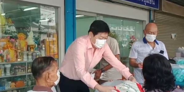 เป็นกำลังใจและมาแจกข้าวสาร ให้แก่ผู้สูงอายุ ตำบลท่าแค อำเภอเมืองจังหวัดลพบุรี ที่มาฝึกอบรมแรงงานผู้สูงอายุ