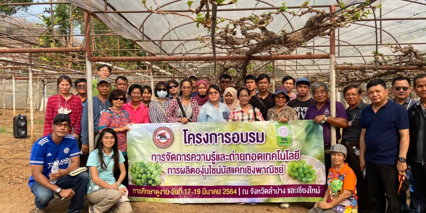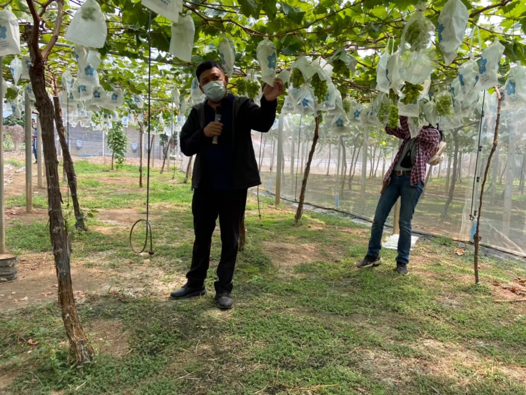 ”จากที่เราไปศึกษาที่ประเทศญี่ปุ่นทั้งเรื่องเทคโนโลยีการปลูก การเก็บเกี่ยว และการเก็บรักษา ซึ่งก็ได้นำมาถ่ายทอดให้กับเกษตรกรจริงๆ ที่เมืองไทยและได้ผลผลิตเรียบร้อยแล้ว โดยที่ผ่านมามีการถ่ายทอดองค์ความรู้ไปแล้ว 2 รุ่น เช่น การใช้องุ่นพันธุ์ไชน์มัสแคทต่อยอดกับองุ่นป่า และกระบวนการในการทำให้องุ่นออกดอก และติดผล ซึ่งจุดเด่นของโครงการนื้คือ สามารถทำให้เกิดเป็นองุ่นไร้เมล็ดที่มีราคาสูงขึ้นได้ เกษตรกรผู้ปลูกองุ่นในพื้นที่ภาคเหนือตอนล่างสามารถปลูกจนจำหน่ายได้จริงแล้วในเชิงพาณิชย์ และสามารถเก็บเกี่ยวผลองุ่นได้ถึง 2 รอบต่อปี”