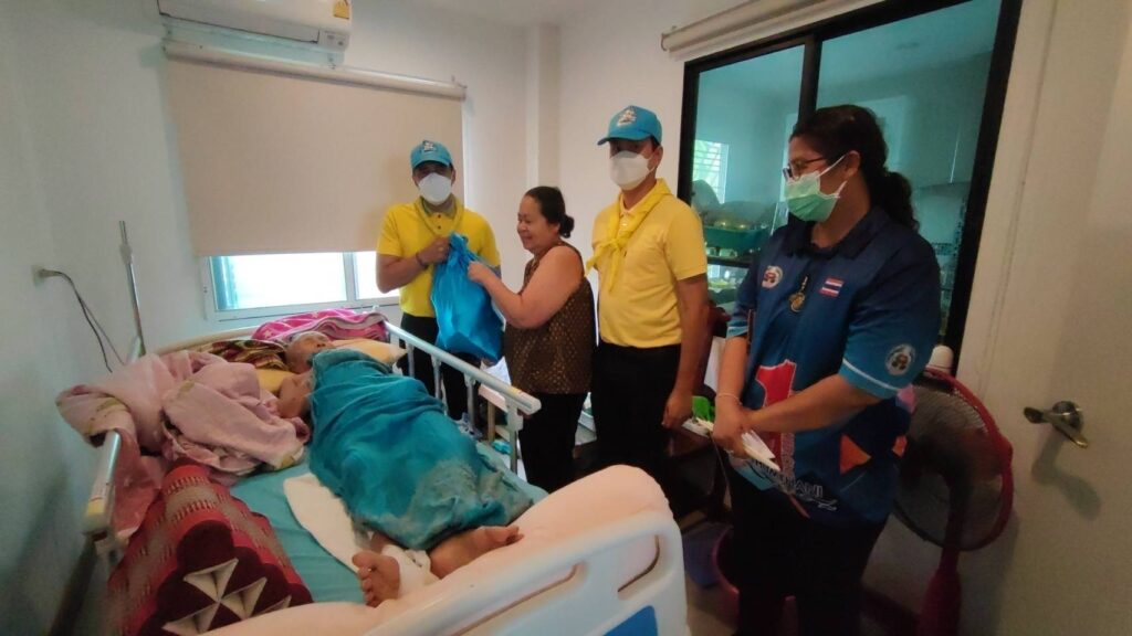 วันที่ 11 สิงหาคม 2565 นายนิติชัย วิริยานนท์ นายอำเภอคลองหลวง นายปวีณวัช ปาระมีศรี ปลัดอำเภอฝ่ายความมั่นคงอำเภอคลองหลวง พร้อมทีมงานอำเภอคลองหลวง และเจ้าหน้าที่สาธารณสุขอำเภอคลองหลวง ได้ร่วมกันลงพื้นที่แจกถุงยังชีพให้กับผู้ป่วยติดเตียงเพื่อถวายเป็นพระราชกุศลแด่ “สมเด็จพระบรมราชชนนีพันปีหลวง” เนื่องในโอกาสมหามงคลเฉลิมพระชนมพรรษา 90 พรรษา 12 สิงหาคม 2565