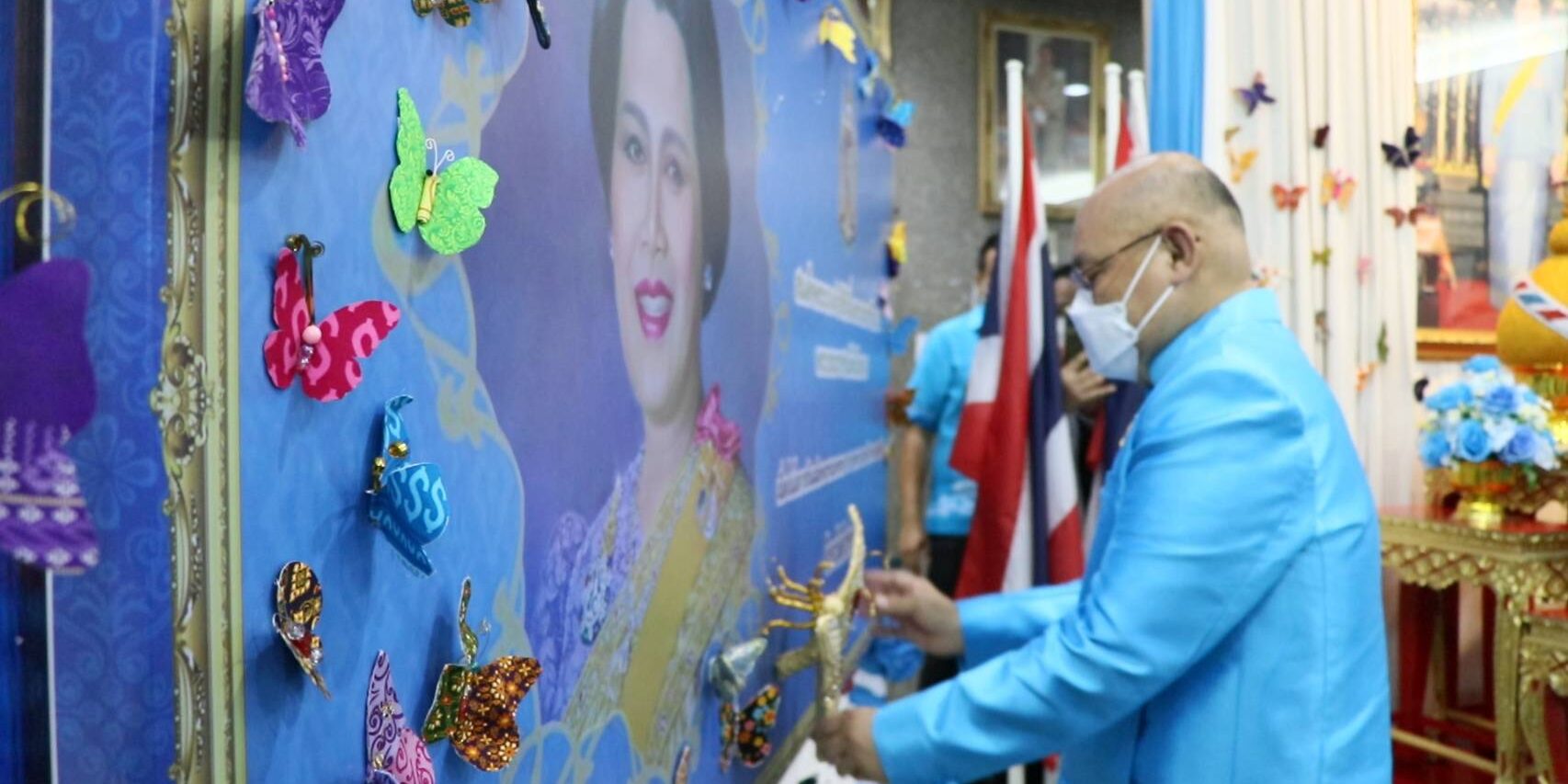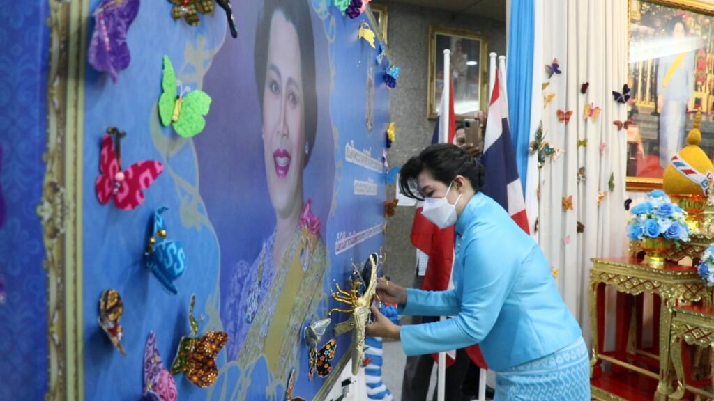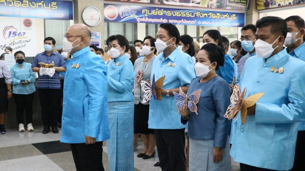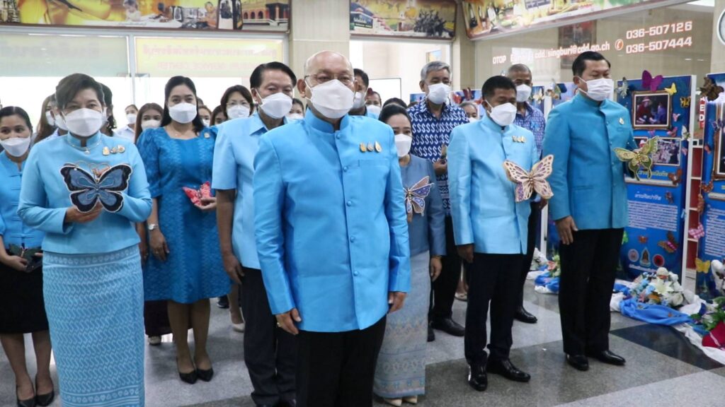 นายชัยชาญ สิทธิวิรัชธรรม ผู้ว่าราชการจังหวัดสิงห์บุรี เป็นประธานเปิดกิจกรรมประดับผีเสื้อผ้าประดิษฐ์จากผ้าไทยในนิทรรศการเฉลิมพระเกียรติสมเด็จพระนางเจ้าสิริกิติ์ พระบรมราชินีนาถ พระบรมราชชนนีพันปีหลวงเนื่องในโอกาสมหามงคลเฉลิมพระชนมพรรษา ๙๐ พรรษา ๑๒ สิงหาคม โดยนางสาววีรวรรณ จันทนเสวี หัวหน้าสำนักงานจังหวัดสิงห์บุรี ได้เชิญชวนหน่วยงานภาครัฐ ภาคเอกชน และประชาชนในจังหวัด ร่วมกันประดิษฐ์ผีเสื้อที่ทำจากผ้าไหม ผ้าฝ้าย หรือผ้าตามอัตลักษณ์ของจังหวัด เพื่อนำไปประดับในนิทรรศการวันแม่แห่งชาติ ณ บริเวณห้องโถง ชั้น ๑ ศาลากลางจังหวัดสิงห์บุรี หลังใหม่ ศูนย์ราชการจังหวัดสิงห์บุรี โดยมี นางจิตติวรรณ สิทธิวิรัชธรรม นายกเหล่ากาชาดจังหวัดสิงห์บุรี ข้าราชการ บุคลากรและเจ้าหน้าที่ในสังกัดของส่วนราชการและหน่วยงานต่าง ๆ องค์กรปกครองส่วนท้องถิ่น อำเภอ สมาชิกเหล่ากาชาดจังหวัดสิงห์บุรี ภาคเอกชน และประชาชนชาวสิงห์บุรี ได้ร่วมกันประดิษฐ์ผีเสื้อ รวม จำนวน ๒,๕๑๑ ตัว เพื่อจัดนิทรรศการ เฉลิมพระเกียรติสมเด็จพระนางเจ้าสิริกิติ์ พระบรมราชินีนาถ พระบรมราชชนนีพันปีหลวง เนื่องในโอกาสมหามงคลเฉลิมพระชนมพรรษา ๙๐ พรรษา ๑๒ สิงหาคม ๒๕๖๕ ตลอดเดือนสิงหาคม ๒๕๖๕ ๒๕๖๕