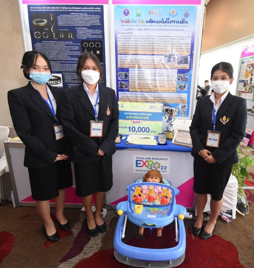 มอบรางวัลให้แก่ นางสาวธัญวรัตน์ นาคแก้ว และคณะ แห่ง วิทยาลัยพยาบาลบรมราชชนนี ชลบุรี จากผลงานการประกวดระดับปริญญาตรี รางวัลผลงานนวัตกรรมสายอุดมศึกษา ประจำปี 2565 รางวัลระดับดี ให้กับผลงานเรื่อง “Walk for Fun มหัศจรรย์เครื่องช่วยเดิน” ในงาน “มหกรรมงานวิจัยแห่งชาติ 2565 (Thailand Research Expo 2022)” เมื่อวันที่ 4 สิงหาคม 2565 ซึ่งงานดังกล่าว จัดขึ้นระหว่างวันที่ 1–5 สิงหาคม 2565 ที่ผ่านมา ณ โรงแรมเซ็นทาราแกรนด์ และบางกอกคอนเวนชันเซ็นเตอร์ เซ็นทรัลเวิลด์ กรุงเทพมหานคร