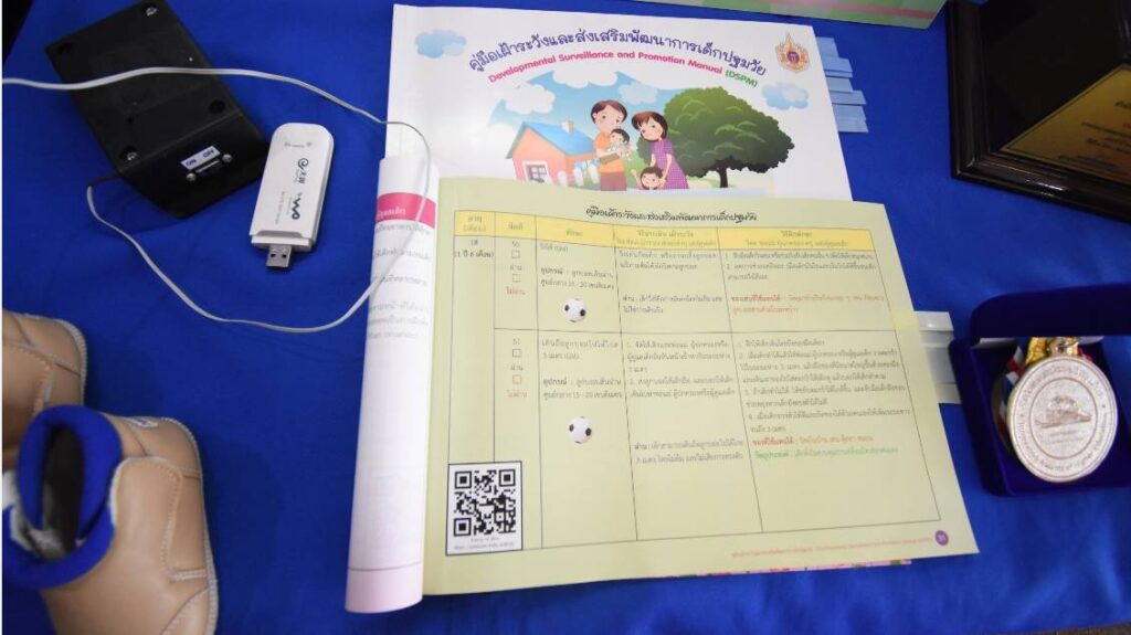 จะส่งสัญญาณไปยังกล่องรับสัญญาณและส่งต่อไปยัง Google sheet ทำให้คุณพ่อคุณแม่สามารถติดตามและประเมินพัฒนาการของลูกได้อย่าง Real time และย้อนหลังจากจำนวนก้าวที่เพิ่มขึ้นใน Google sheet