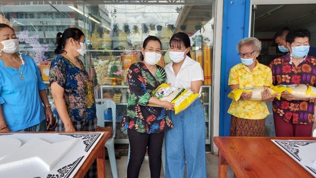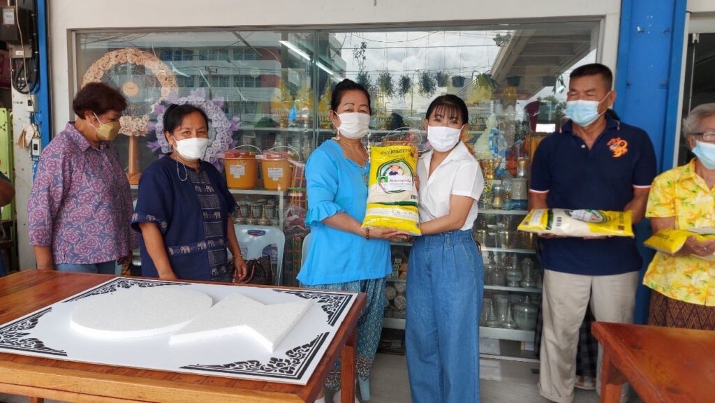 ได้นำ ข้าวสาร และหน้ากากอานามัย ไปมอบให้กับ