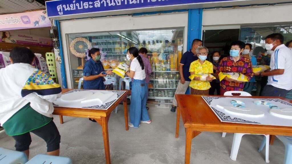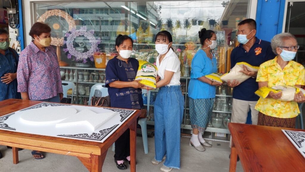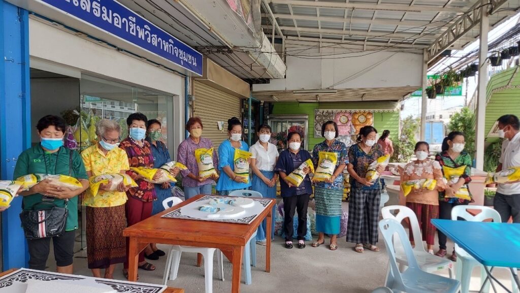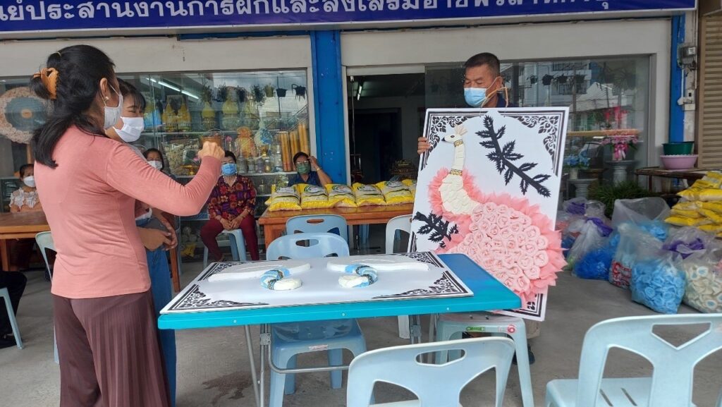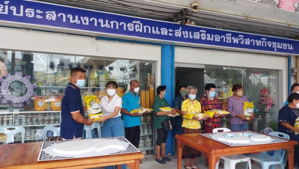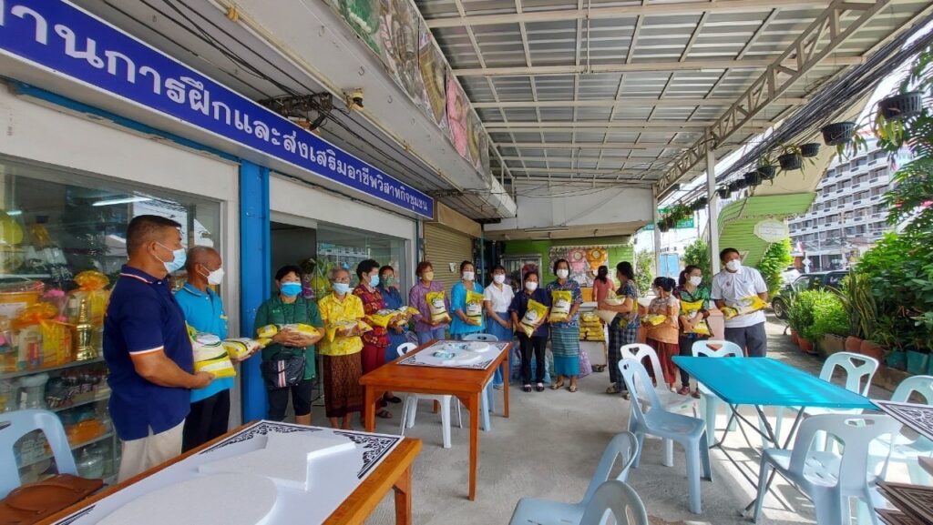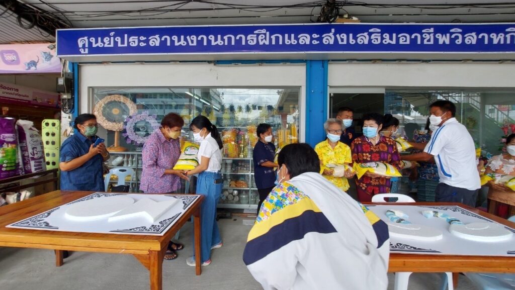 “ศูนย์ประสานงานการฝึก และส่งเสริมอาชีพวิสาหกิจชุมชน” เพื่อแจกให้กับผู้สูงอายุ ที่เข้ารับการอบรม เพื่อเป็นขวัญ กำลังใจ ในการเข้ารับการอบรม ตามโครงการ “เราไม่ทิ้งกัน”
