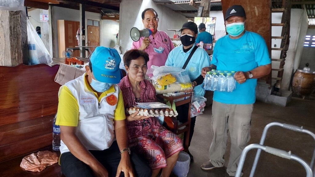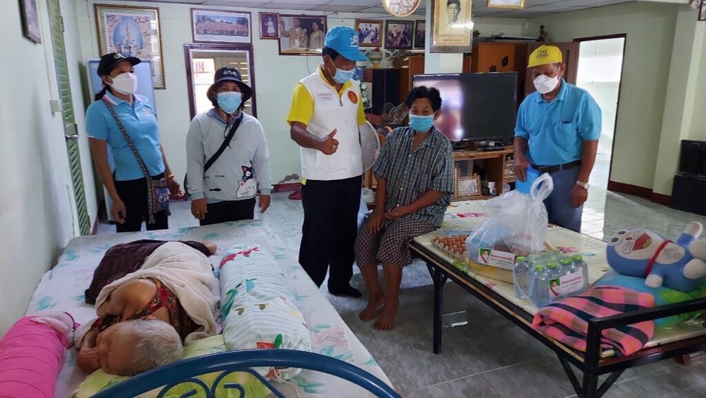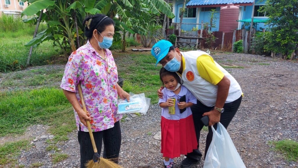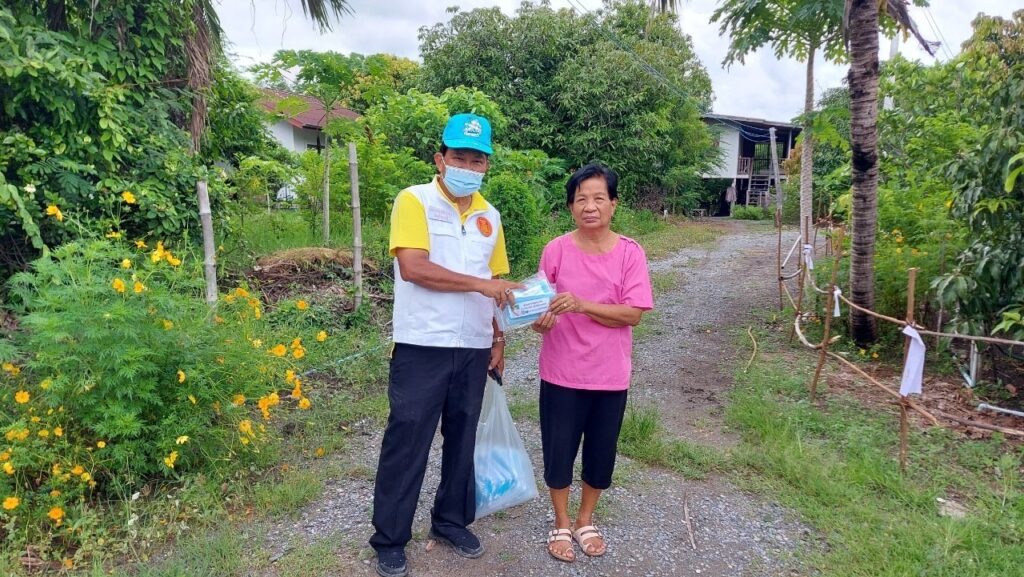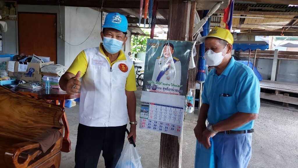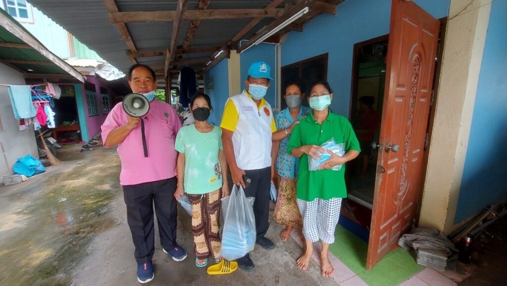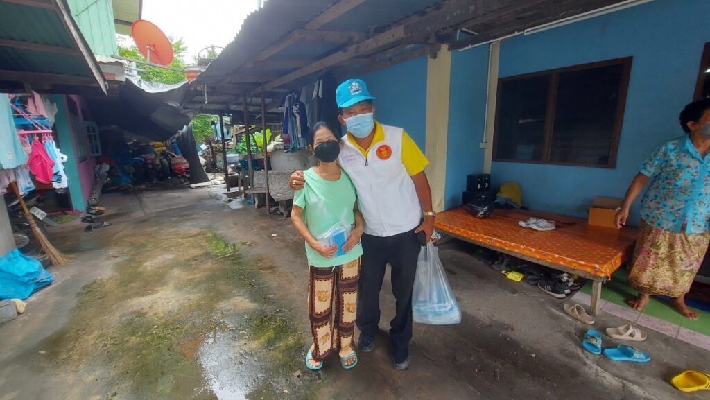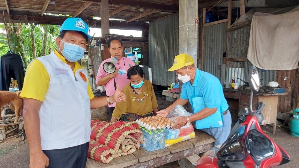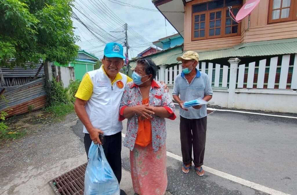 ลงพื้นที่ พร้อมทีมงาน (อสม) เพื่อสำรวจข้อมูล ของพื้นที่ และเยี่ยมประชาชน (ที่ป่วยติดเตียง กลุ่มเปราะบาง ผู้สูงอายุ ผู้พิการ ผู้ด้อยโอกาส และผู้ที่ประสบปัญหา ที่เกิดจากสถานการณ์โรคโควิด ฯลฯ) ที่ไม่สามารถช่วยเหลือตนเองได้โดยได้มอบ เครื่องอุปโภค บริโภค และหน้ากากอนามัย เพื่อเป็นการเยี่ยมเยียนให้กำลังใจ และเป็นการช่วยเหลือเบื้องต้น แก่ประชาชน ตามโครงการ “เราไม่ทิ้งกัน” ด้วยความห่วงใย