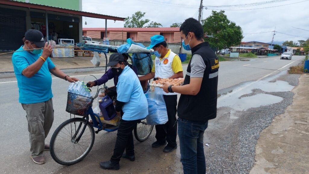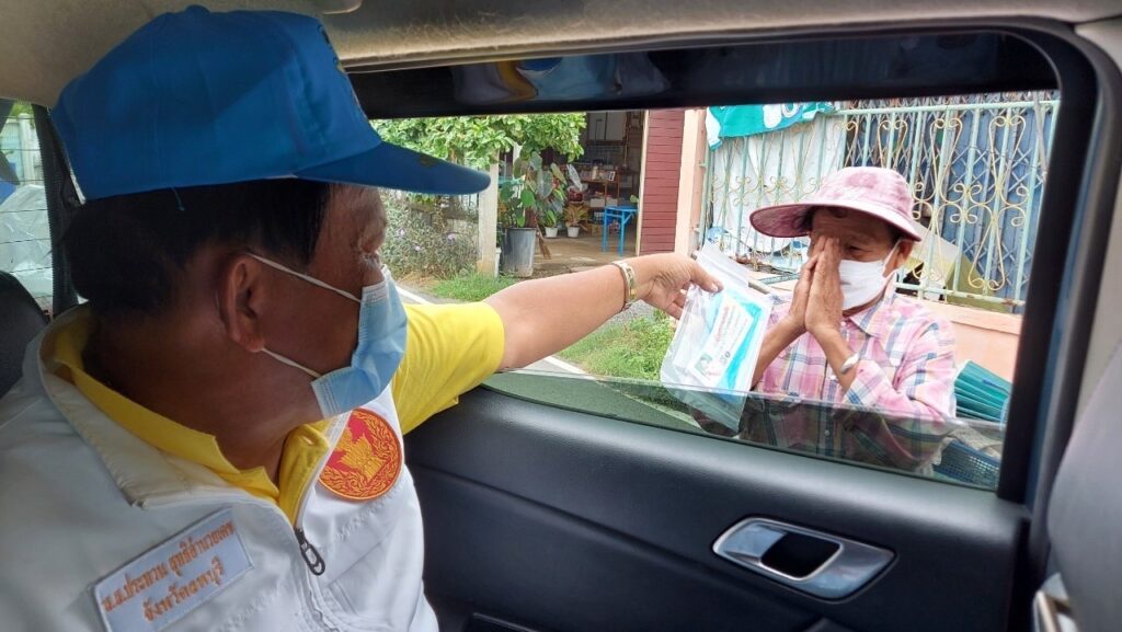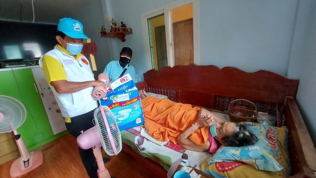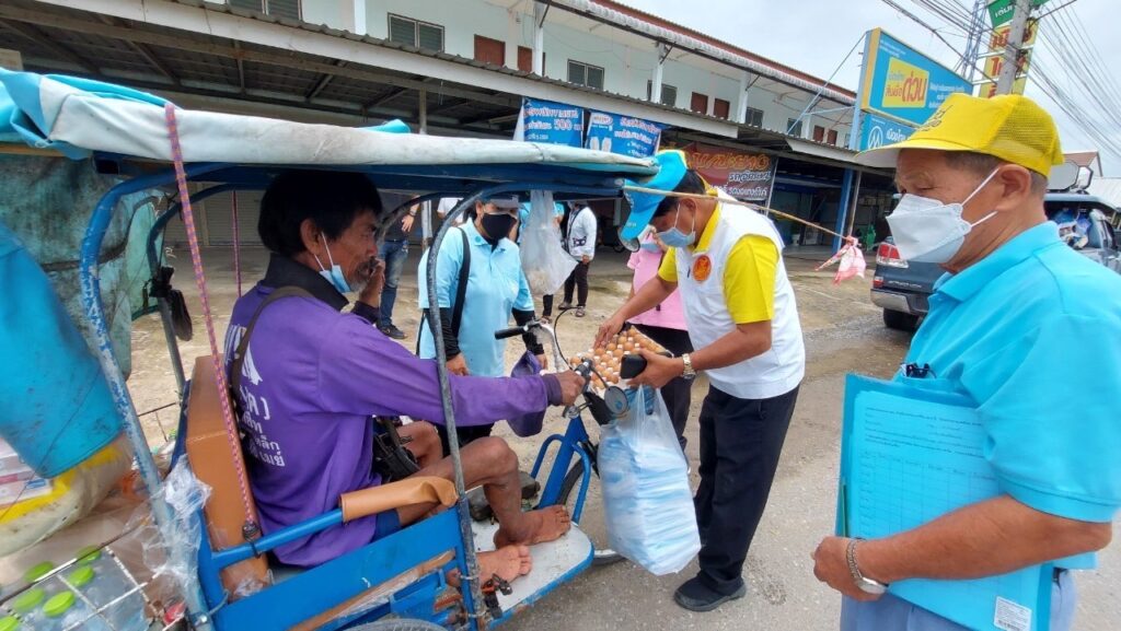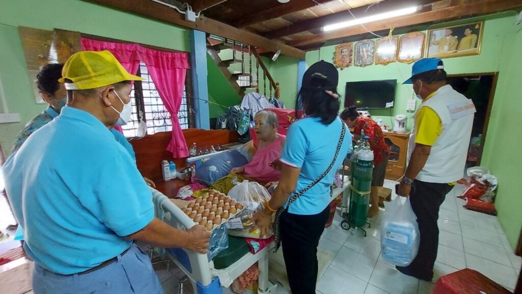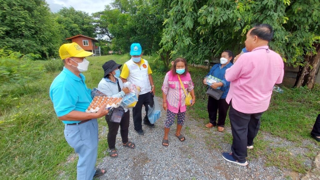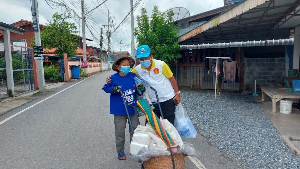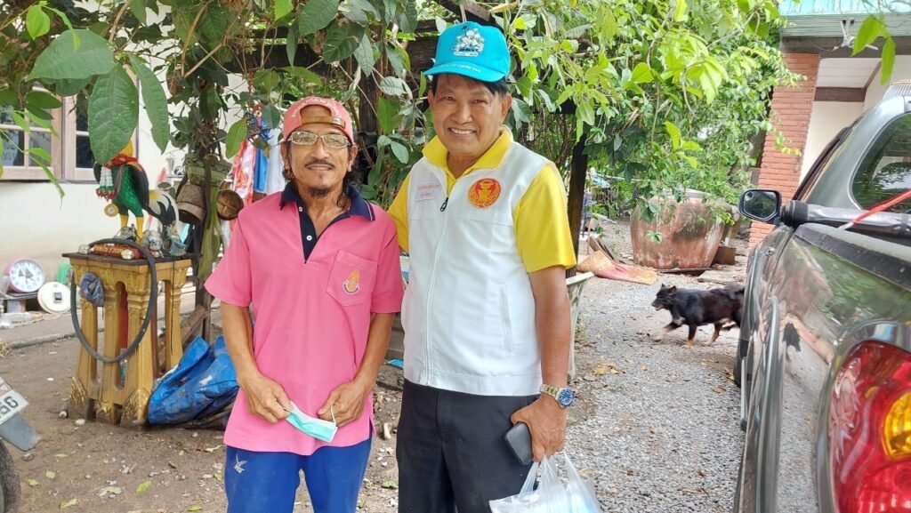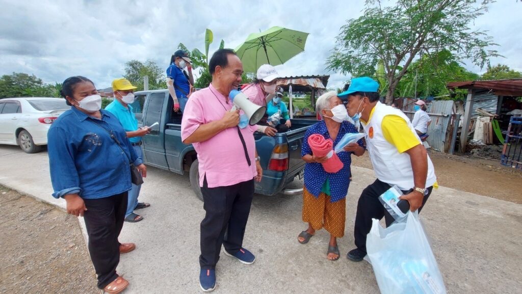 ลงพื้นที่ พร้อมทีมงาน (อสม) เพื่อสำรวจข้อมูล ของพื้นที่ และเยี่ยมประชาชน (ที่ป่วยติดเตียง กลุ่มเปราะบาง ผู้สูงอายุ ผู้พิการ ผู้ด้อยโอกาส และผู้ที่ประสบปัญหา ที่เกิดจากสถานการณ์โรคโควิด ฯลฯ) ที่ไม่สามารถช่วยเหลือตนเองได้โดยได้มอบ เครื่องอุปโภค บริโภค และหน้ากากอนามัย เพื่อเป็นการเยี่ยมเยียนให้กำลังใจ และเป็นการช่วยเหลือเบื้องต้น แก่ประชาชน ตามโครงการ “เราไม่ทิ้งกัน” ด้วยความห่วงใย