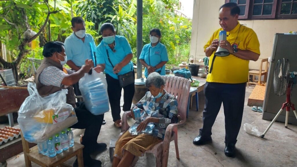 ลงพื้นที่ พร้อมทีมงาน (อสม) เพื่อสำรวจข้อมูล ความเป็นอยู่ ของพื้นที่ และเยี่ยมประชาชน (ที่ป่วยติดเตียง กลุ่มเปราะบาง ผู้สูงอายุ ผู้พิการ ผู้ด้อยโอกาส และผู้ที่ประสบปัญหา ที่เกิดจากสถานการณ์โรคโควิด ฯลฯ) ที่ไม่สามารถช่วยเหลือตนเองได้โดยได้มอบ เครื่องอุปโภค บริโภค และหน้ากากอนามัย เพื่อเป็นการเยี่ยมเยียนให้กำลังใจ และเป็นการช่วยเหลือเบื้องต้น แก่ประชาชน “ตามโครงการ “เราไม่ทิ้งกัน”ด้วยความห่วงใย จาก ส.ส ประทวน สุทธิอำนวยเดช
