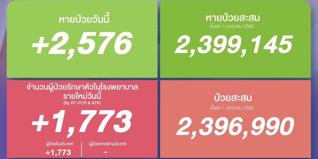 หายป่วยสะสม 2,399,145 ราย (ตั้งแต่ 1 มกราคม 2565)