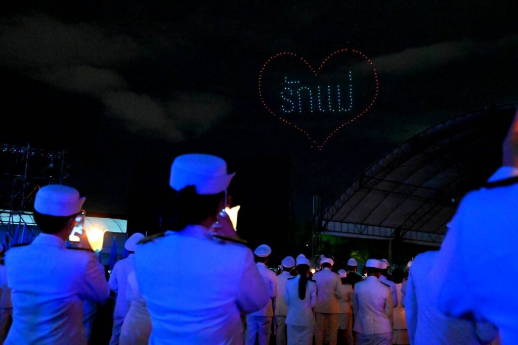 ซึ่งจัดแสดงโดยกระทรวงการอุดมศึกษา วิทยาศาสตร์ วิจัยและนวัตกรรม (อว.) โดยสำนักงานการวิจัยแห่งชาติ (วช.) ร่วมกับสมาคมกีฬาเครื่องบินจำลองและวิทยุบังคับ พร้อมด้วยสำนักงานปลัดสำนักนายกรัฐมนตรี ซึ่งโดรนที่นำมาร่วมบินแปรอักษรในครั้งนี้ สร้างและพัฒนาซอฟต์แวร์ขึ้นด้วยฝีมือของเยาวชนไทย จาก โรงเรียนพิบูลมังสาหาร,โรงเรียนสาธิต มหาวิทยาลัยราชภัฏพระนครศรีอยุธยา,โรงเรียนท่าอิฐศึกษา และโรงเรียนนนทบุรีวิทยาลัย