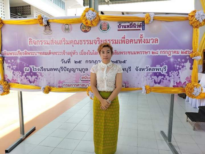 นางกฤษณา สิทธิราช วัฒนธรรมจังหวัดลพบุรี ให้เกียรติมอบเกียรติบัตรเพื่อแสดง ความยินดีกับ นางปวริศา รัตนตรัยรัตน เลขาเครือข่ายวัฒนธรรม ระดับอำเภอ ภาคชุมชน ได้เข้าร่วมกิจกรรมส่งเสริมคุณธรรม จริยธรรม เพื่อคนทั้งมวล ที่โดมอเนกประสงค์โรงเรียนลพบุรีปัญญานุกูล จังหวัดลพบุรี ต.ป่าตาล อ.เมือง จ.ลพบุรี