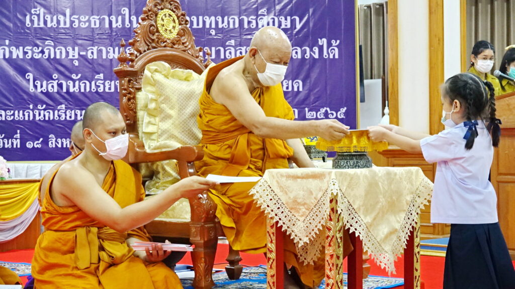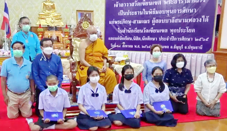 โดยพิธีมอบทุนการศึกษาให้แก่นักเรียน นิสิต นักศึกษา เพื่อส่งเสริมให้เด็กและเยาวชนที่มีความประพฤติดีใฝ่เรียนแต่ขาดแคลนทุนทรัพย์มีโอกาสได้รับการศึกษาอย่างต่อเนื่องและแบ่งเบาภาระทางเศรษฐกิจของผู้ปกครอง โดยที่สถานศึกษาและคณะครูอาจารย์ได้ร่วมกันดำเนินการคัดเลือกฯ เพื่อเข้ารับทุนการศึกษาตามที่เคยปฏิบัติมาเป็นประจำทุกปี ตั้งแต่ปี พ.ศ.2523 สำหรับทุนการศึกษานักเรียน นิสิต นักศึกษา ประจำปี พ.ศ.2565 แบ่งออกเป็นระดับประถมศึกษา มัธยมศึกษา และอุดมศึกษา รวมจำนวน 315 ทุน เป็นจำนวนเงินทั้งสิ้น 934,000 บาท นอกจากนี้ ยังได้มีการมอบถวายทุนการศึกษาให้กับพระภิกษุสามเณรของสำนักเรียนคณะสงฆ์จังหวัดปทุมธานี ผู้สอบได้เปรียญธรรม 3 ประโยค, 6 ประโยค และ 9 ประโยค ประจำปี พ.ศ.2565 จำนวน 83 ทุน เป็นจำนวนเงินทั้งสิ้น 324,000 บาท รวมทั้งสิ้น 1,258,000 บาท