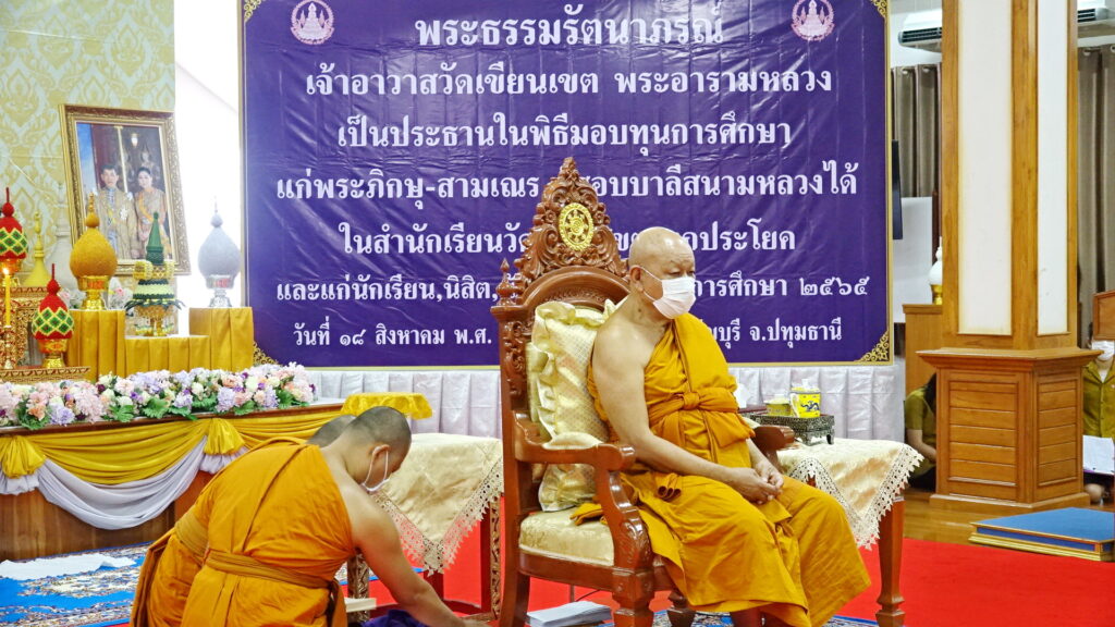 พระธรรมรัตนาภรณ์ เจ้าอาวาสวัดเขียนเขต พระอารามหลวง ประธานอนุกรรมการโครงการวัด ประชา รัฐ สร้างสุข (ส่วนกลาง) ฝ่ายสาธารณูปการของมหาเถรสมาคม กล่าวว่า การมอบทุนการศึกษาแก่นักเรียน นิสิต นักศึกษา ถือเป็นภารกิจด้านการศึกษาสงเคราะห์ของคณะสงฆ์ เป็นการช่วยเหลือเกื้อกูลผู้กำลังศึกษาและสถาบันการศึกษา ทั้งประเภทระดับชั้นและต่อเนื่อง โดยได้ดำเนินการมาอย่างต่อเนื่องตั้งแต่ปีพุทธศักราช 2523 เพื่อส่งเสริมให้เด็กและเยาวชนที่มีความประพฤติดีใฝ่เรียนแต่ขาดแคลนทุนทรัพย์มีโอกาสได้รับการศึกษาอย่างต่อเนื่องและแบ่งเบาภาระทางเศรษฐกิจของผู้ปกครอง ในส่วนการมอบทุนการศึกษาแก่พระภิกษุสามเณรผู้สอบบาลีสนามหลวงได้เปรียญธรรม 3,6,9 สำนักเรียนคณะสงฆ์จังหวัดปทุมธานีนั้น เพื่อสนับสนุนและเป็นขวัญกำลังใจแก่พระภิกษุสามเณรในการศึกษาพระปริยัติธรรม สู่ความเป็นผู้ที่มีความรอบรู้และแตกฉานในพระธรรมวินัย ทั้งภาคทฤษฎีและภาคปฏิบัติ อันจะเป็นทั้งที่พึ่งของพุทธศาสนิกชน เป็นอายุของพระพุทธศาสนาให้ยิ่งๆ ขึ้นไป.